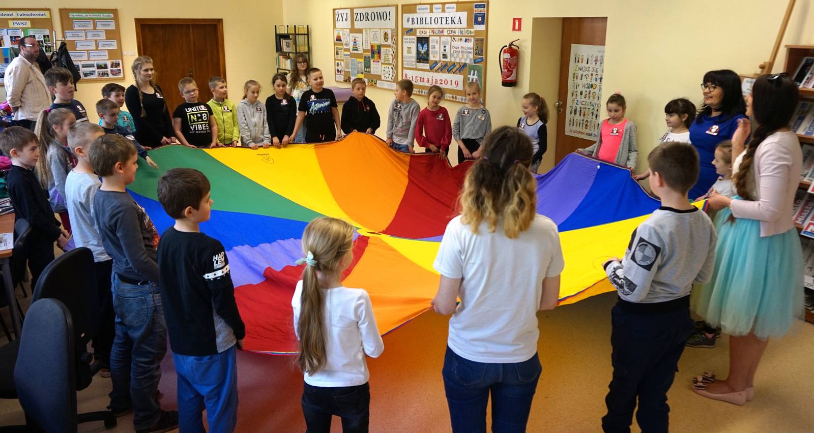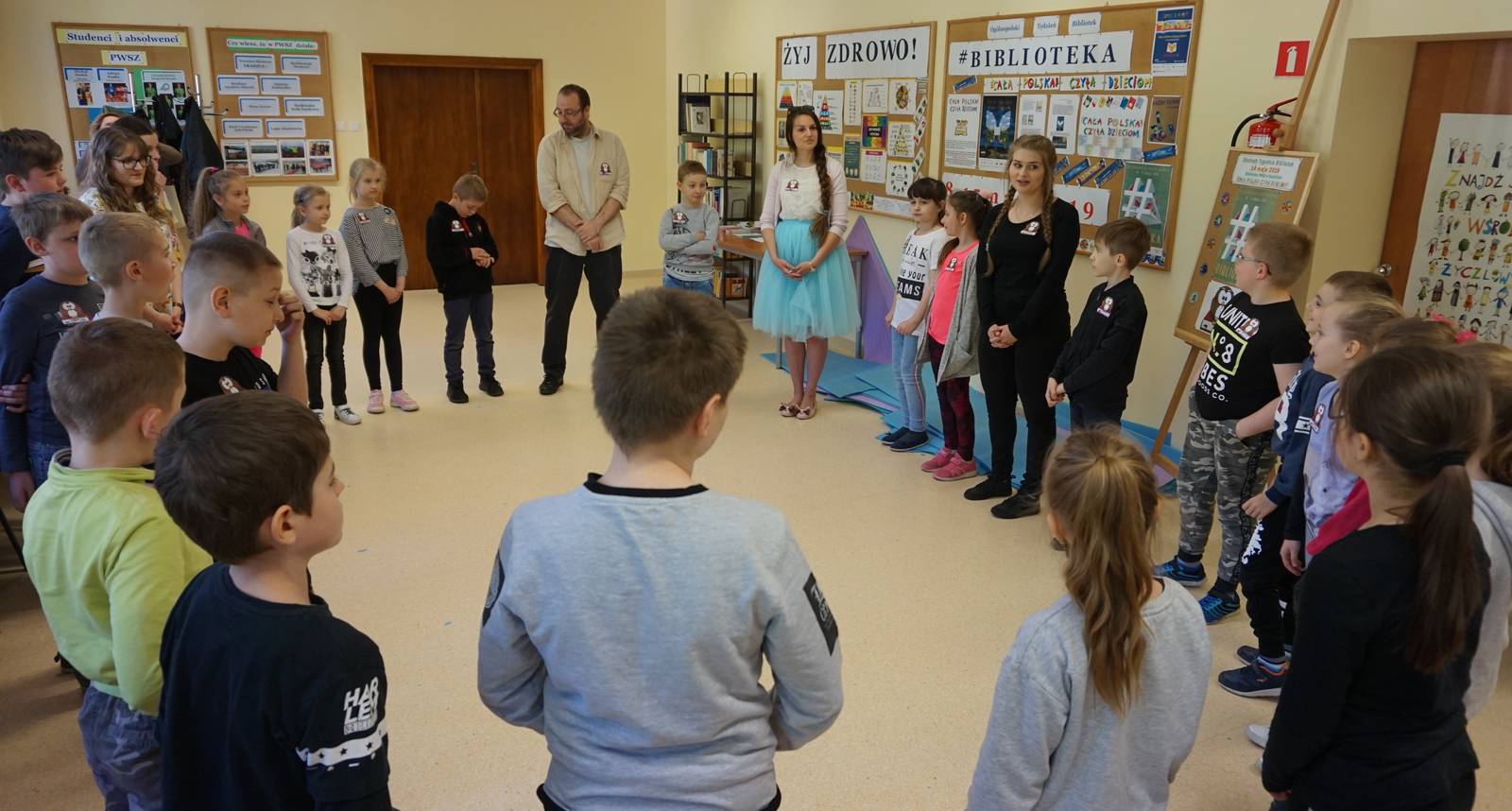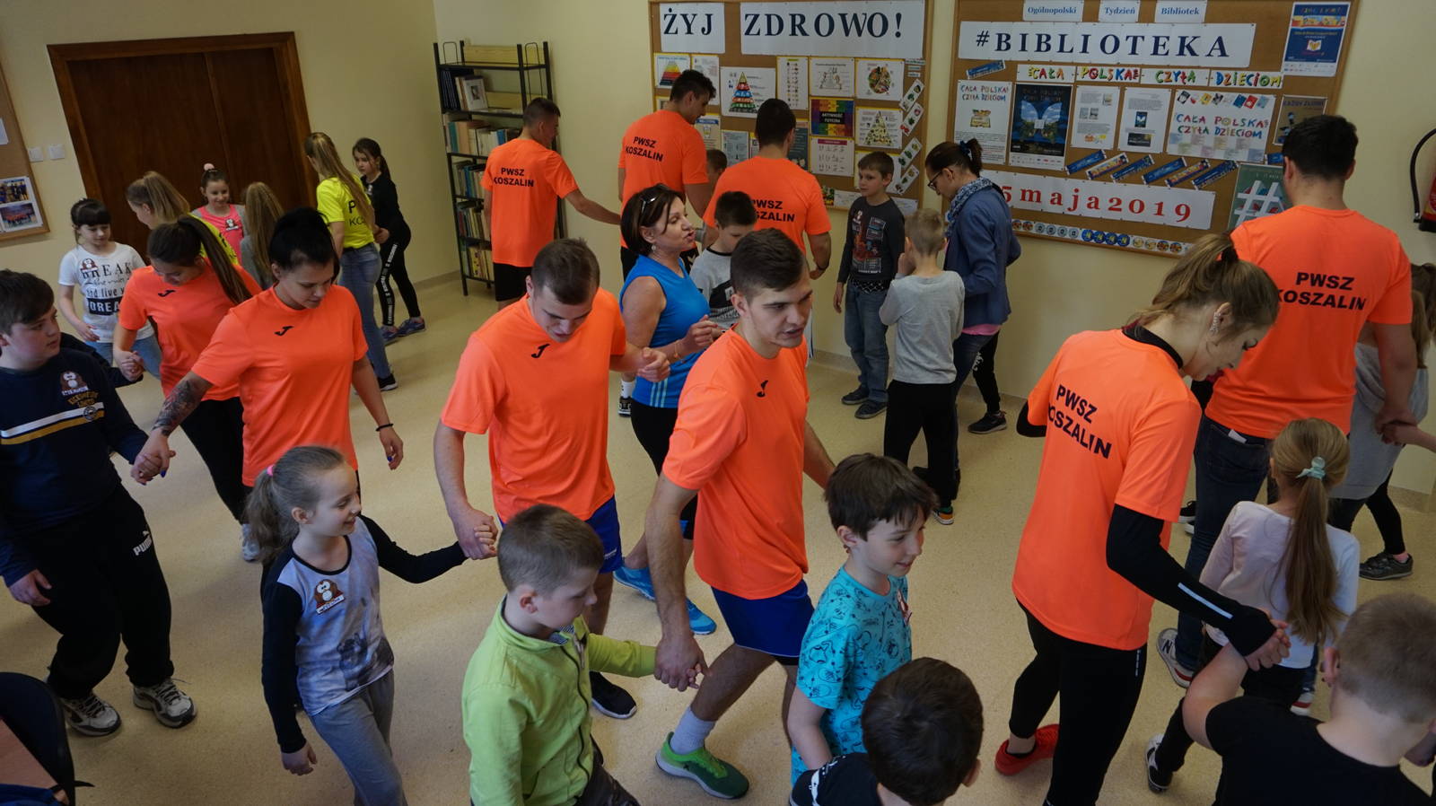 14.05.2019 roku w ramach obchodów Tygodnia Bibliotek w Bibliotece PWSZ zorganizowano imprezę czytelniczą, na którą zaproszono dzieci z klasy 2 ze szkoły Podstawowej nr 10 w Koszalinie. Spotkanie mające na celu promocję czytelnictwa wśród dzieci, przygotowali i poprowadzili studenci I roku Pedagogiki PWSZ pod opieką mgr Elżbiety Walczak i II roku Wychowania fizycznego pod opieką dr Agnieszki Połanieckiej. Podczas spotkania Rektor PWSZ dr Jan Kuriata przeczytał fragment „O zbójcach z Góry Chełmskiej” Gracjana Bojara-Fijałkowskiego. W dalszej części imprezy odbyły się zajęcia plastyczne podczas których dzieci wykonały zakładki do książki. Studenci WF poprowadzili cieszące się największym zainteresowaniem gry i zabawy taneczne. Każde dziecko otrzymało drobne upominki i materiały promocyjne zachęcające do wspólnego czytania z rodzicami i rodziną w ramach kampanii społecznej „Cała Polska czyta dzieciom”.