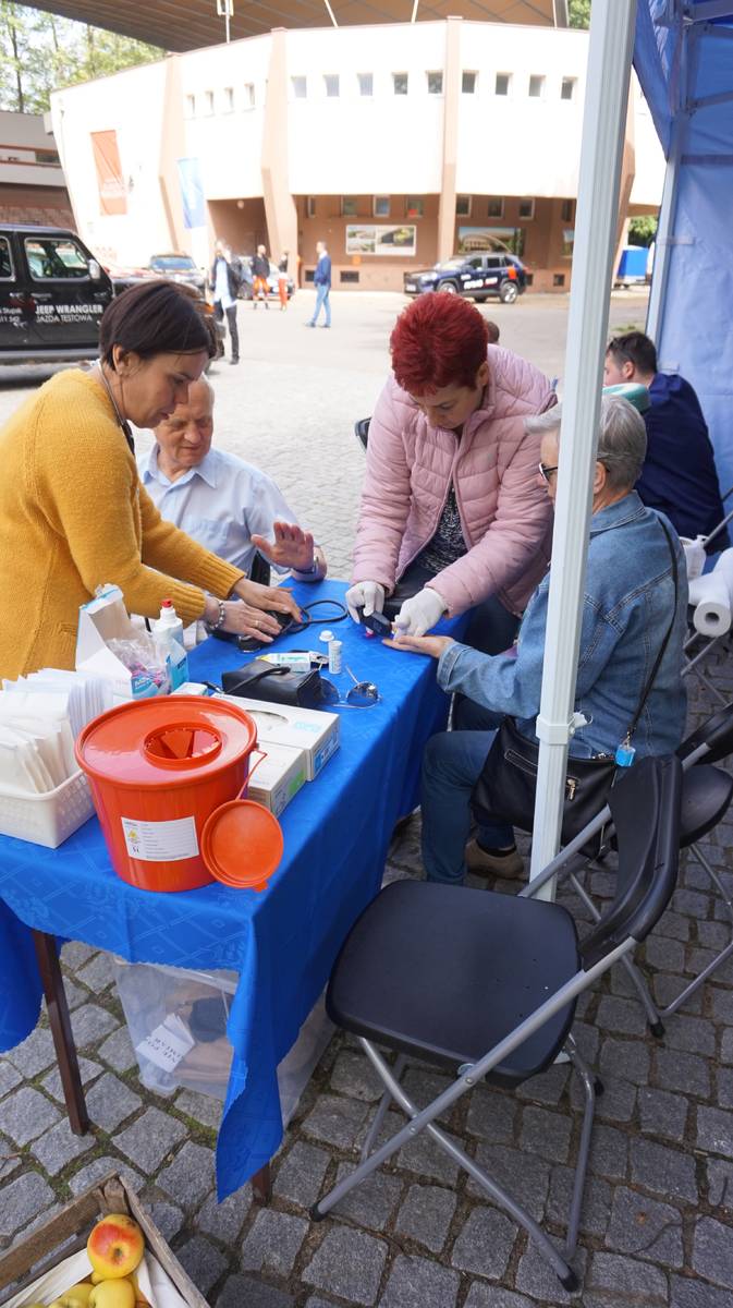 W piątek 24 maja br. na terenie uczelni swoje stoiska prezentowały wszystkie kierunku kształcenia. W Monoprofilowym Centrum Symulacji Medycznej odbył się pokaz zajęć praktycznych. Młodziez z kierunku pielęgniarstwa badała poziom cukru i pomiar ciśnienia oraz prowadziła instruktaż opatrywania ran. Studenci fizjoterapii przeprowadzali badania postawy ciała i stóp oraz pokaz gimnastyki leczniczej w bólach kręgosłupa, masażu leczniczego ręki i odcinka szyjnego kręgosłupa. Na miejscu można było skorzystać z porad fizjoterapeuty. Studenci dietetyki przeprowadzali analizę składu masy ciała na aparacie In Body 470 i prowadzili konsultacje dietetyczne, a studentki kosmetologii wykonywały masaże dłoni.