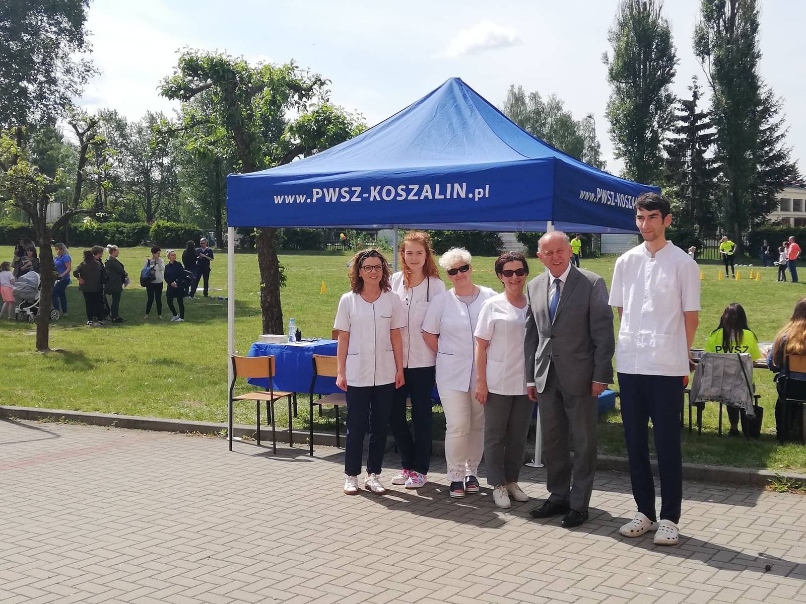 W samo południe na parkingu przed Uczelnią odbył się spektakularny pokaz akcji ratunkowej studentów ratownictwa medycznego we współpracy ze strażakami KM PSP w Koszalinie. Studenci kierunku bezpieczeństwo narodowe rozegrali mecz piłki siatkowej pod hasłem "Zdrowie i bezpieczeństwo". Młodzież z kierunków wychowanie fizyczne i pedagogika prowadziła zajęcia ruchowe, gry i zabawy dla dzieci.