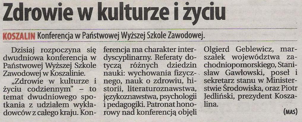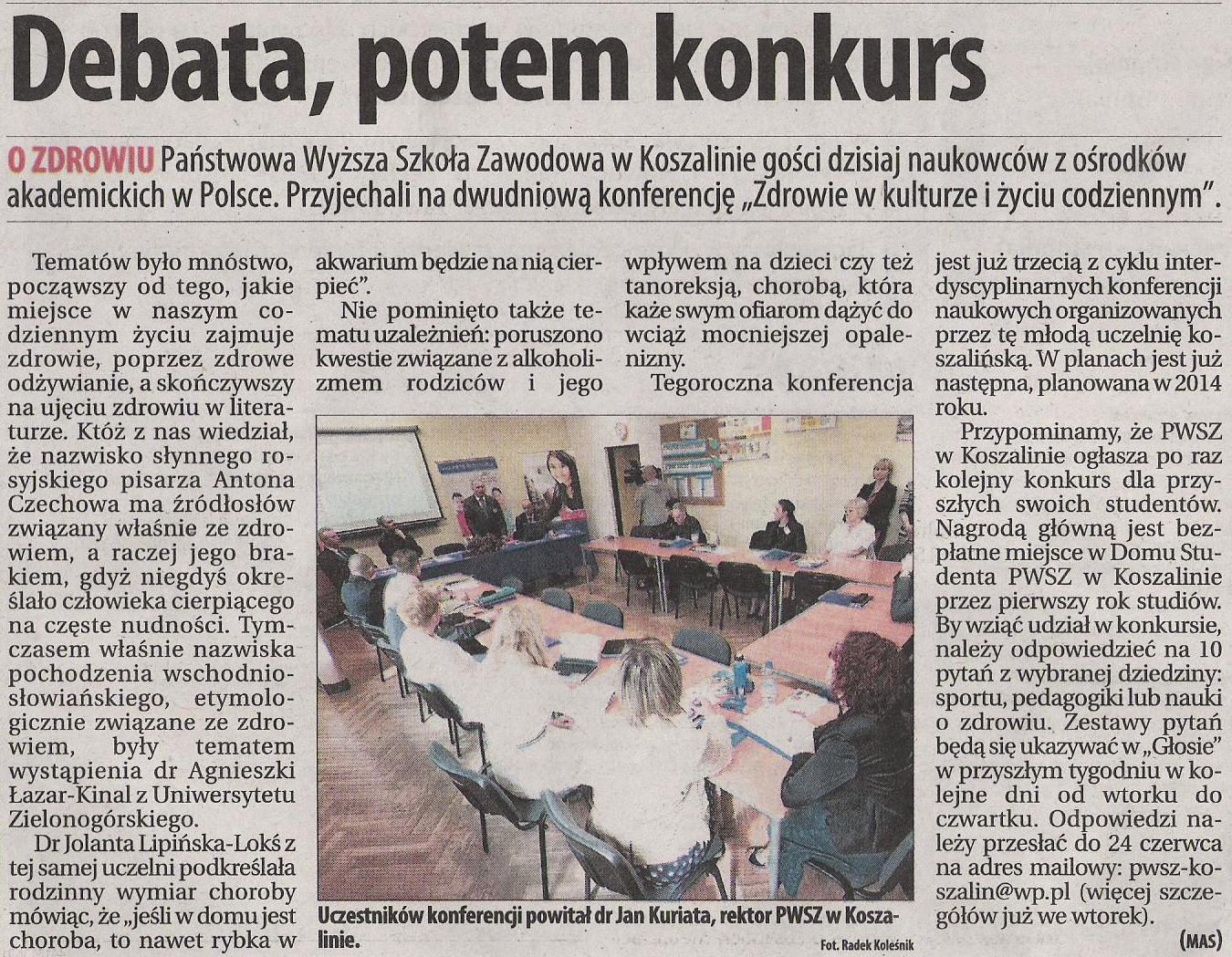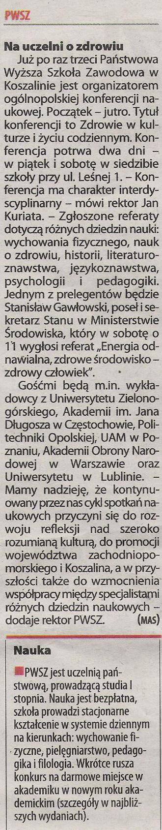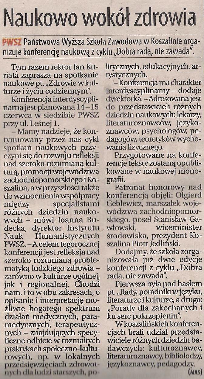 W dniach 14 i 15 czerwca 2013 roku w Państwowej Wyższej Szkole Zawodowej w Koszalinie odbyła się III interdyscyplinarna konferencja naukowa z cyklu „Dobra rada, nie zawada” pt. Zdrowie w kulturze i życiu codziennym.