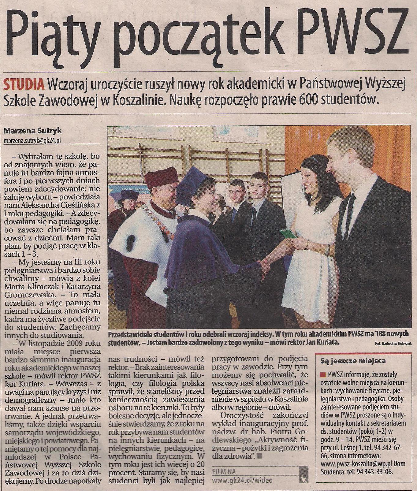 Materiały nt. inauguracji w PWSZ z lokalnych mediów: