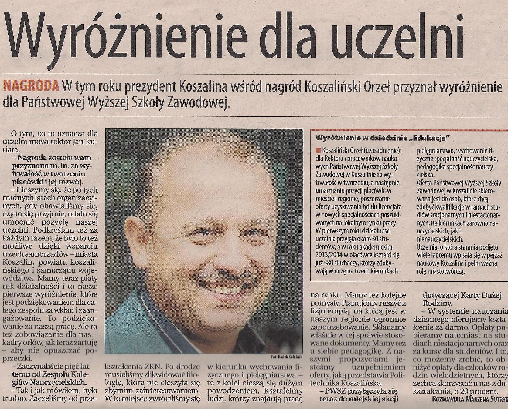 PWSZ - LAUREATKĄ KOSZALIŃSKICH ORŁÓW