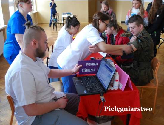 Studenci kierunku pielęgniarstwa pod opieką wykładowców PWSZ zachęcali młodzież do zdrowego stylu życia: przeprowadzali badania pomiaru ciśnienia oraz naukę badania poziomu cukru, pomiar składu ciała aparatem Tanita.