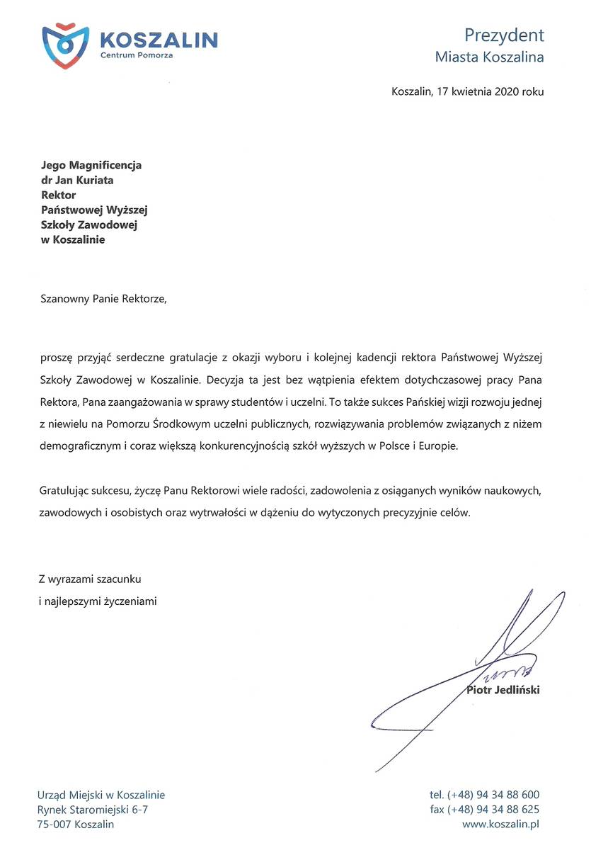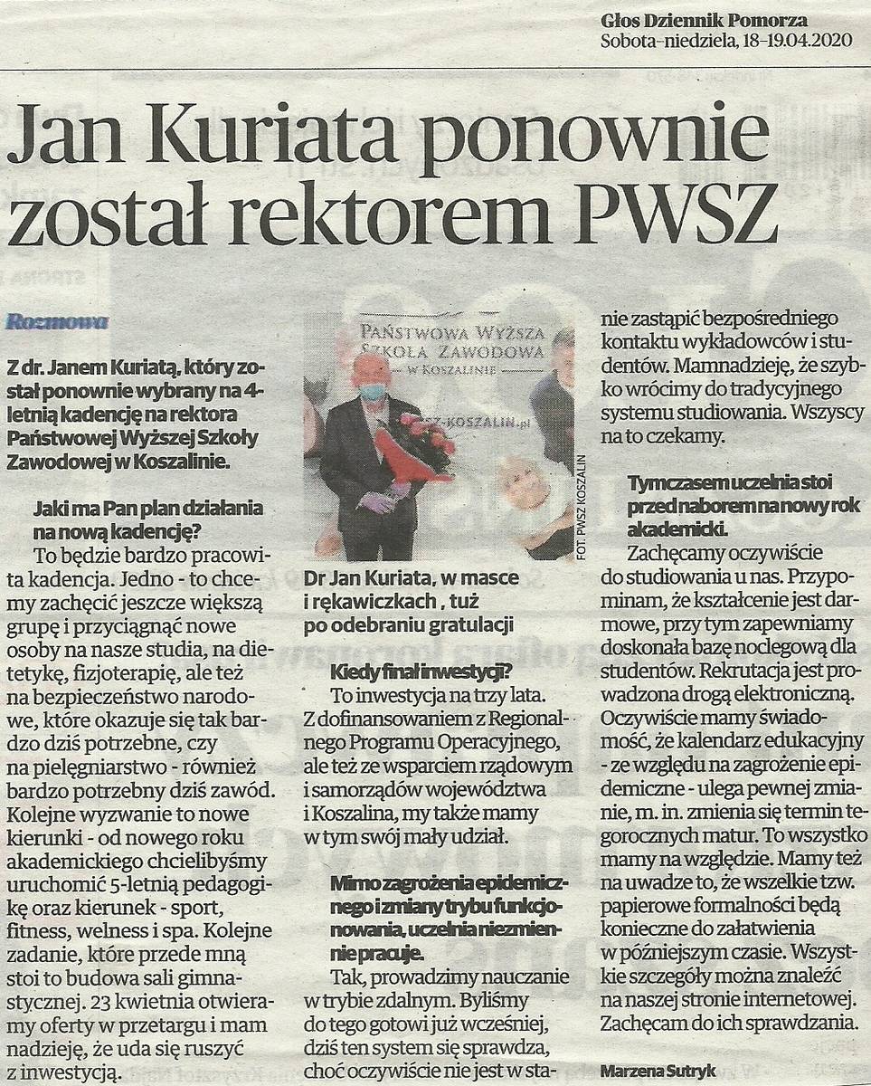 Miło nam poinformować, że Rektorem PWSZ w Koszalinie na kadencję 2020-2024 został wybrany dr Jan Kuriata. Serdeczne gratulacje!