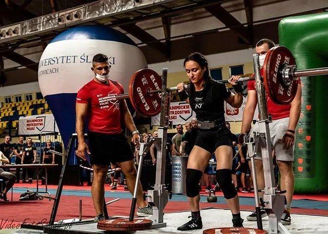 Izabela Góralska studentka I roku fizjoterapii PWSZ w Koszalinie wywalczyła dwa srebrne medale: jeden w kategorii do 57 kg oraz drugi srebrny medal w kategorii open kobiet w trójboju siłowym klasycznym podczas Akademickich Mistrzostw Polski w Katowicach, które odbyły się w dniach 28-30.08.2020r.