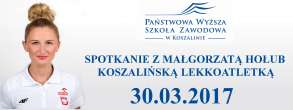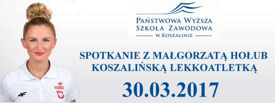 30 marca 2017r. w PWSZ w Koszalinie odbyło się spotkanie z Małgorzatą Hołub koszalińską lekkoatletką, sprinterką, zawodniczką Klubu Lekkoatletycznego Bałtyk Koszalin, złotą medalistką w sztafecie 4 × 400m w halowych mistrzostwach Europy w Belgradzie (2017). Hołub jest Sportowcem Roku 2016, lauretką statuetki "Walczącej Nike" przyznawanej od 5 lat najlepszym koszalińskim sportowcom i trenerom. Pani Małgosia opowiedziała o drodze jaką przeszła, aby móc osiągać takie sukcesy, o swoich sportowych planach na przyszłość, diecie sportowca i ... miłości do koszykówki. Nasza mistrzyni obiecała przeprowadzić trening lekkoatletyczny ze studentami PWSZ.