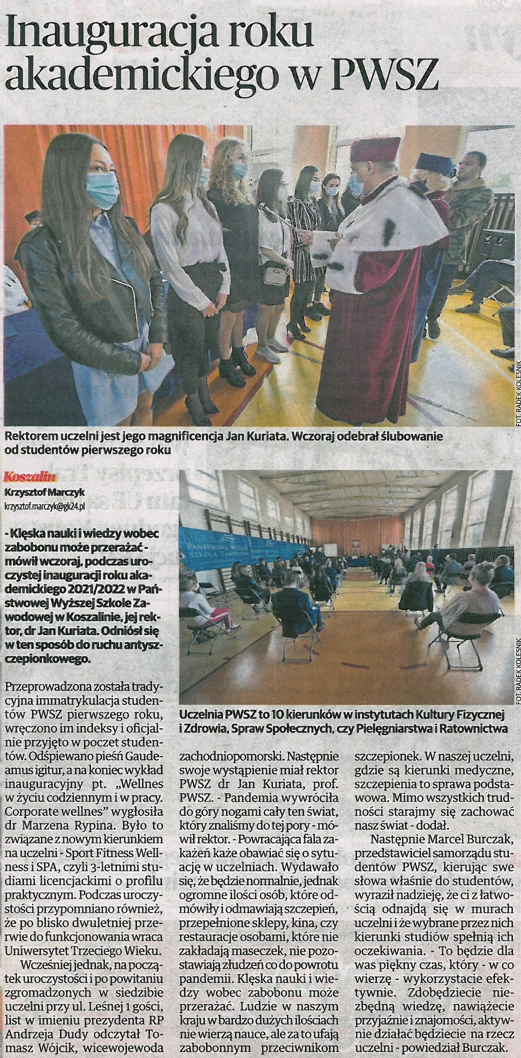 - PWSZ w Koszalinie: inauguracja roku akademickiego - gk24.pl - 7.10.2021