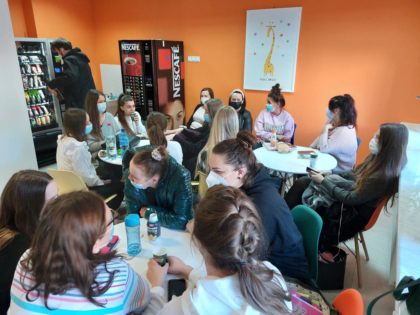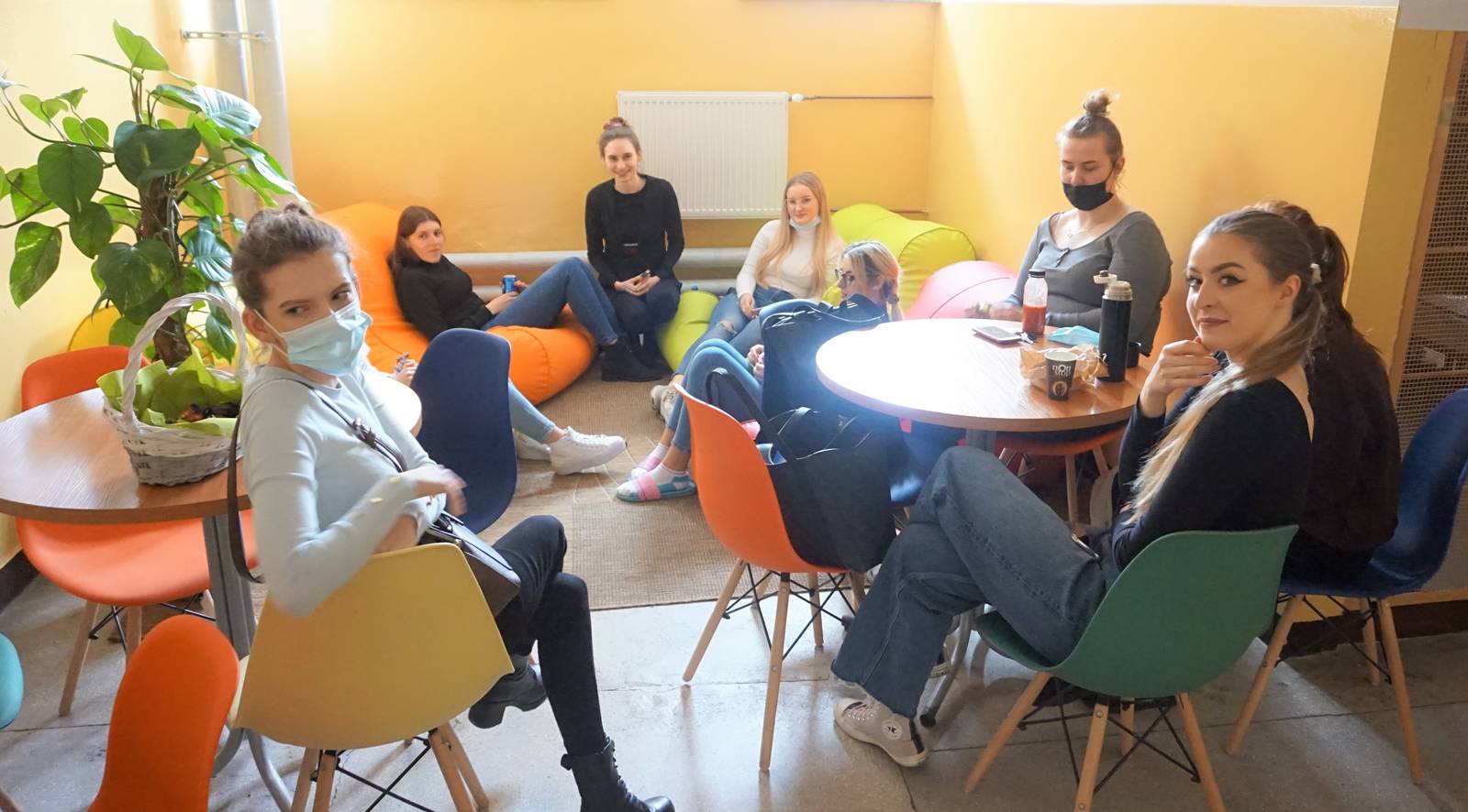 Studenci mają do dyspozycji dwa pomieszczenia z możliwością relaksu oraz dodatkowo na każdym piętrze strefy relaksu.