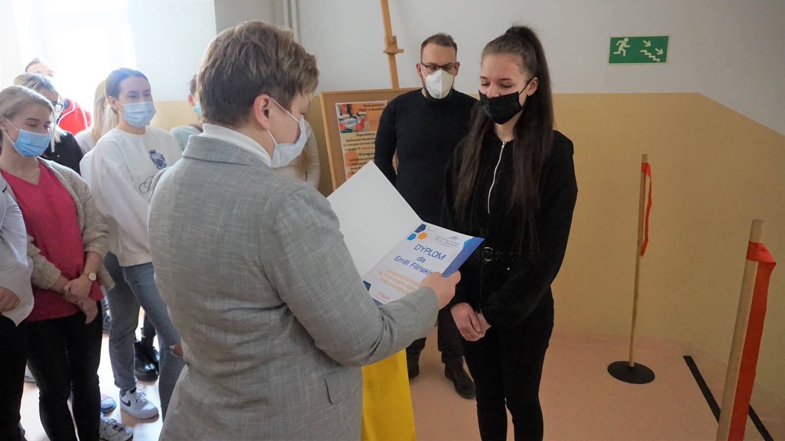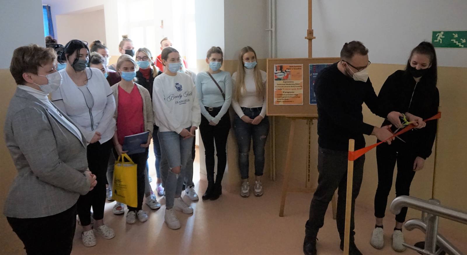 Podczas uroczystości odbyło się symboliczne przecięcie wstęgi przez przewodniczącego Samorządu Studenckiego PWSZ w Koszalinie Marcela Burczaka i laureatkę konkursu na logo Strefy Komfortu, Emilię Filińską studentkę 1 roku Bezpieczeństwa narodowego.