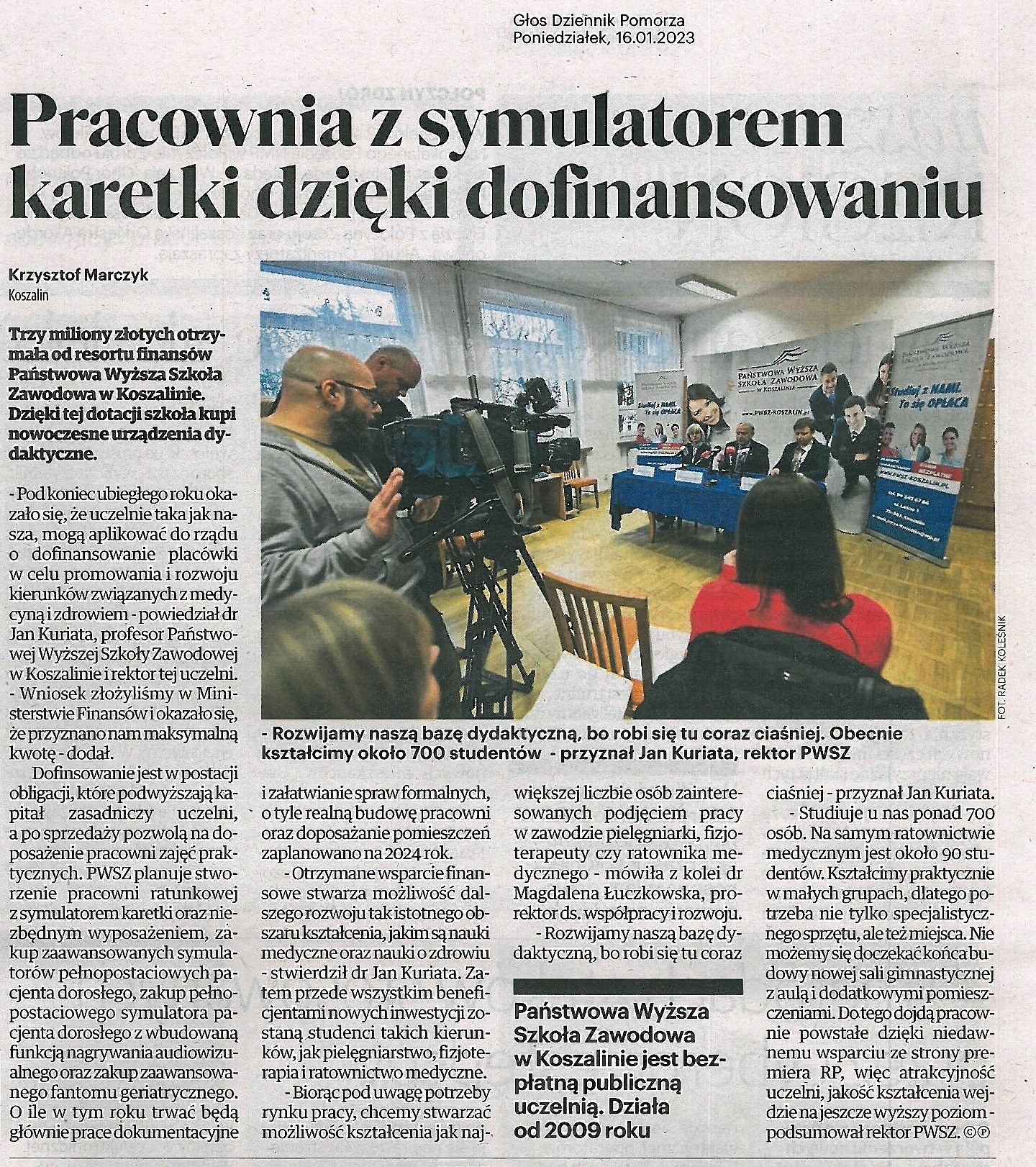 PWSZ w Koszalinie ze sporym dofinansowaniem dla kierunków medycznych - gk24.pl - 10.01.2023