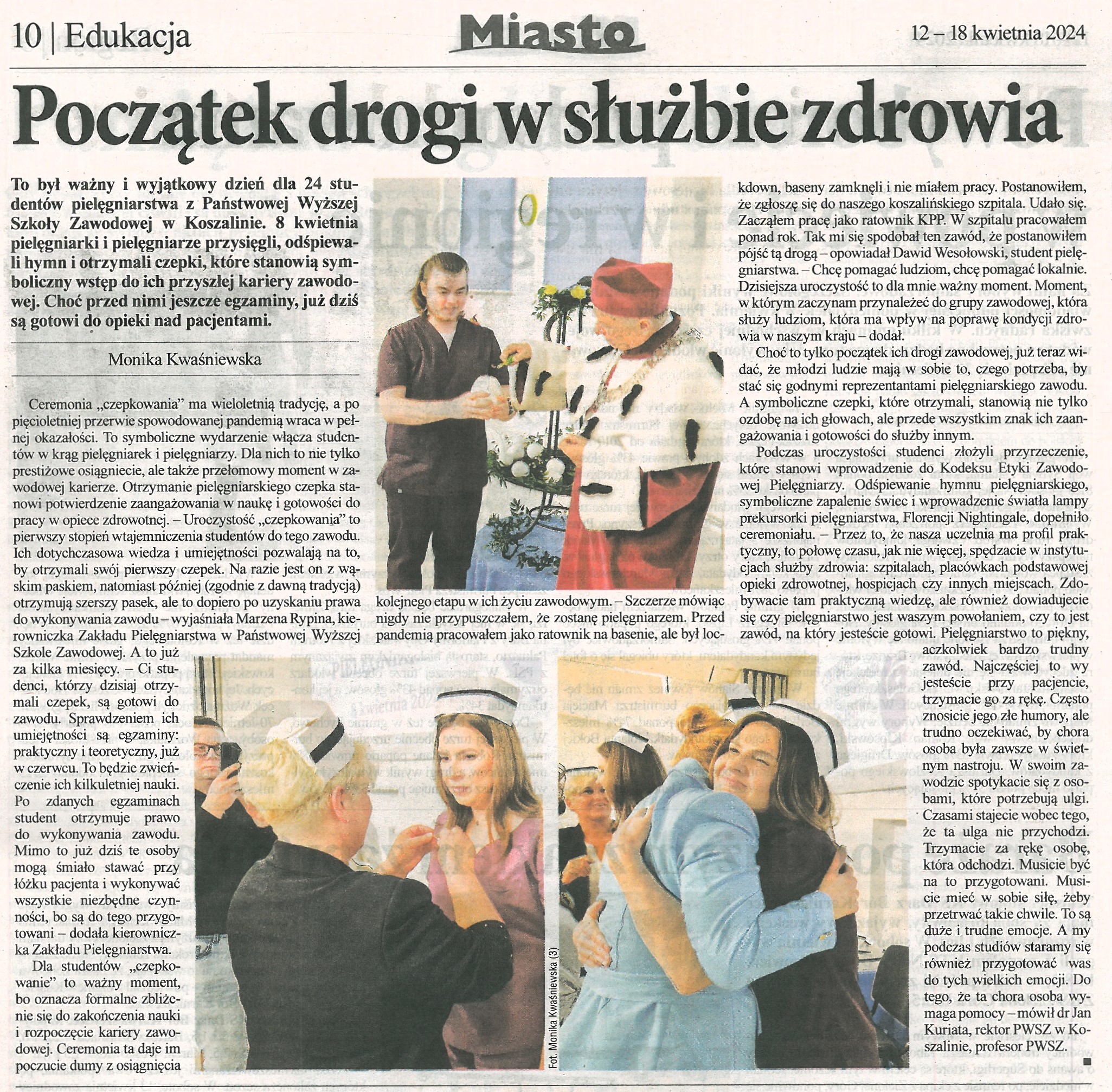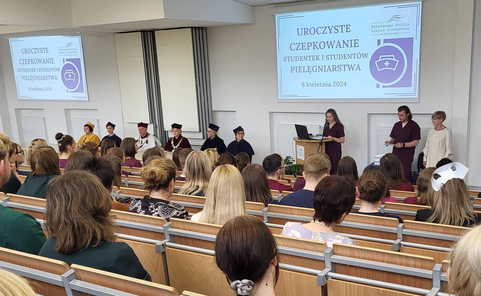 8 kwietnia 2024r. - po pięciu latach przerwy spowodowanej pandemią - w PWSZ w Koszalinie już po raz ósmy odbyło się uroczyste wręczenie czepków studentom 3 roku pielęgniarstwa, którzy symbolicznie dołączyli do grona pielęgniarek i pielęgniarzy.