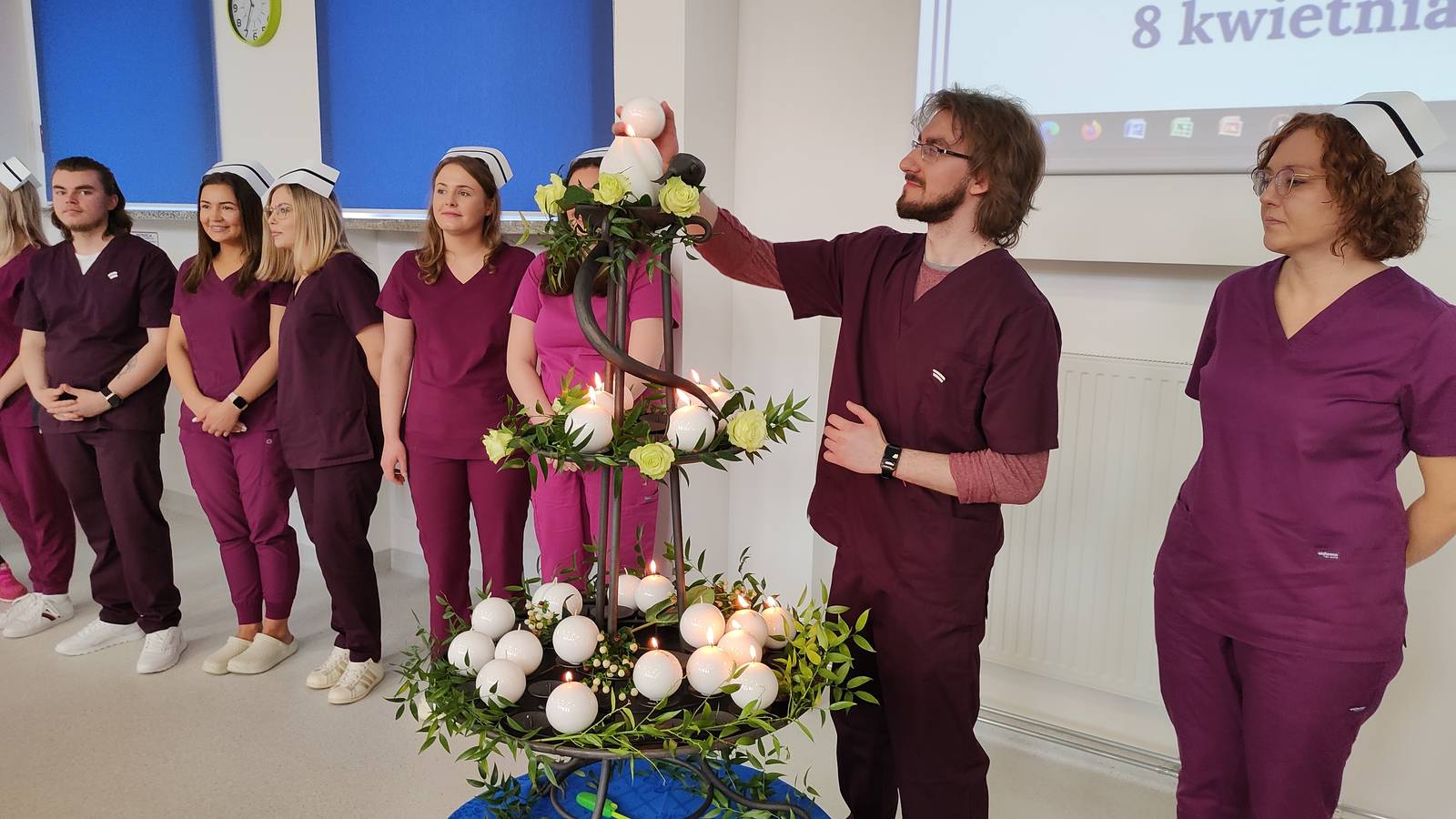 Podczas uroczystości studenci złożyli przyrzeczenie, które stanowi wprowadzenie do Kodeksu Etyki Zawodowej Pielęgniarzy, odśpiewali hymn pielęgniarski, kobiety otrzymały symboliczne czepki pielęgniarskie, a mężczyźni przypinkę zw. pinsem i poprzez symboliczne zapalenie świec wprowadzili światło lampy z epoki prekursorki zawodu – Florencji Nightingale.