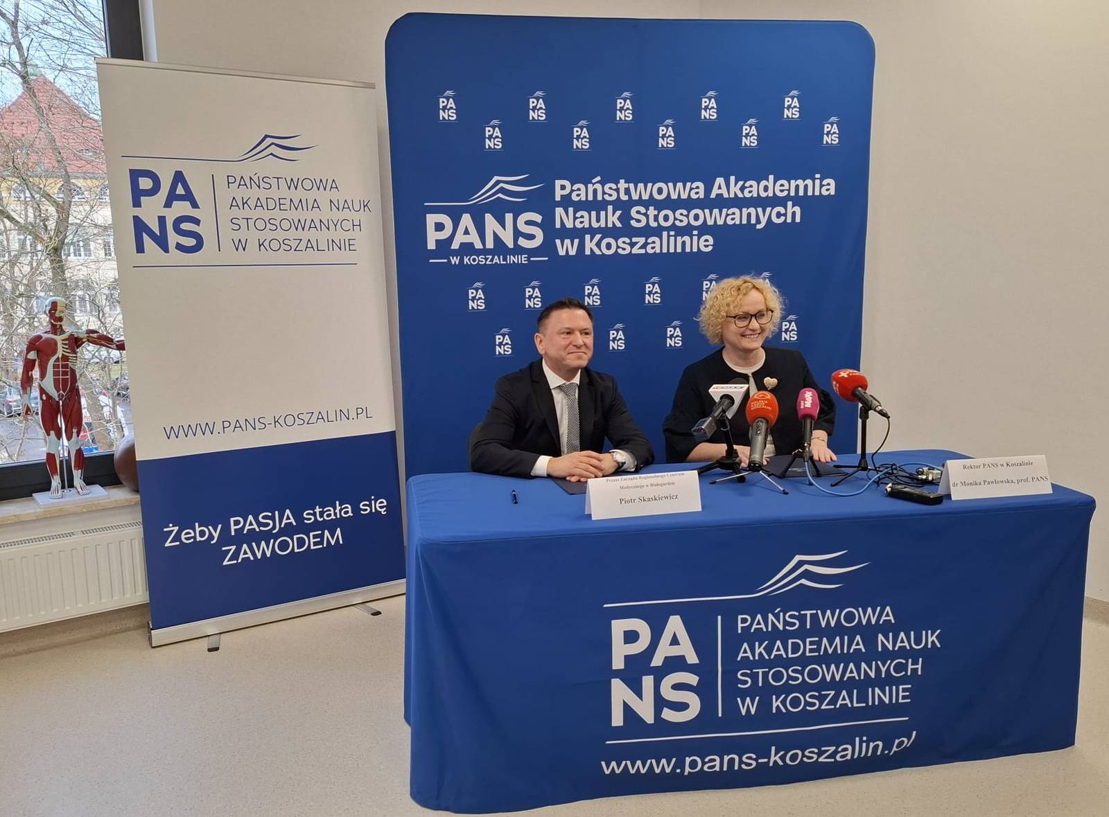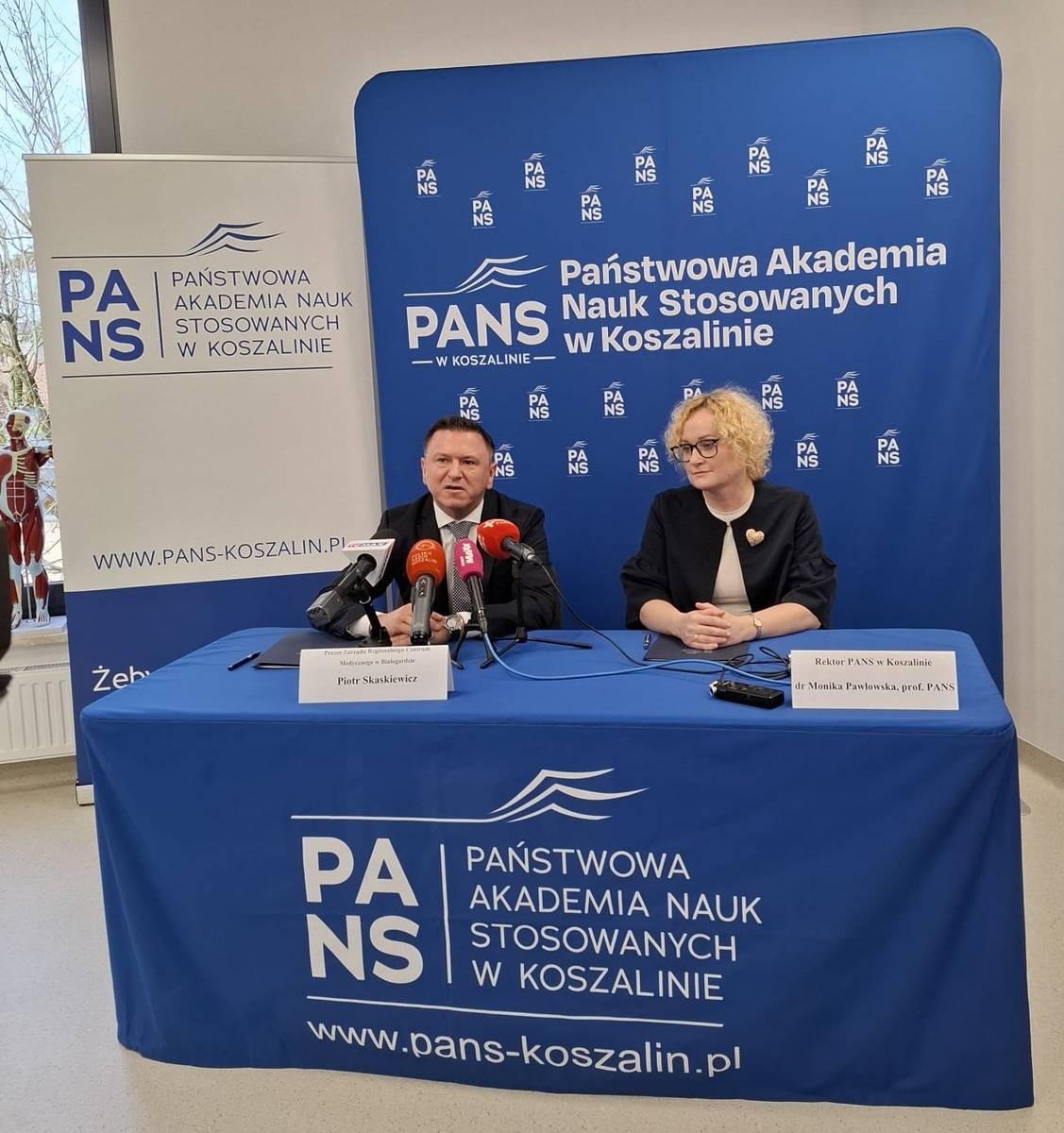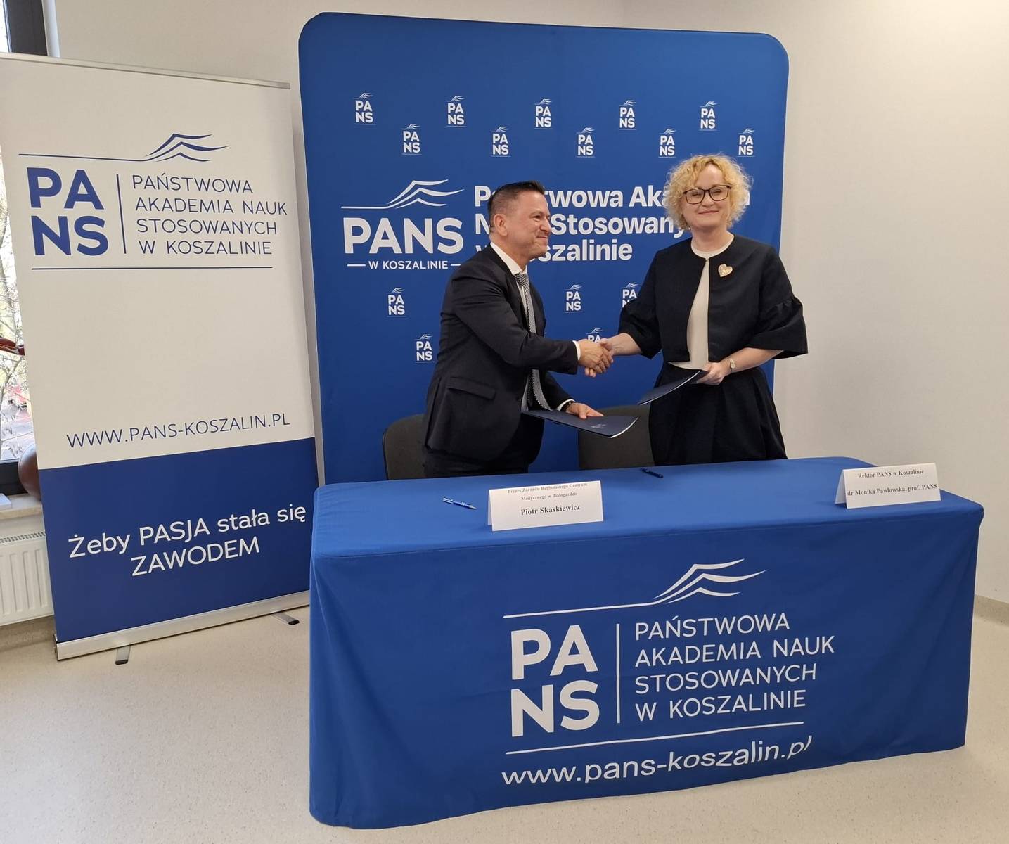 W dniu 25.11.2024 r. Rektor Państwowej Akademii Nauk Stosowanych w Koszalinie dr Monika Pawłowska, prof. PANS i Piotr Skaskiewicz Prezes Zarządu Regionalnego Centrum Medycznego w Białogardzie podpisali umowę o współpracy w zakresie realizacji kształcenia na kierunku fizjoterapia. W wydarzeniu uczestniczyła także Pani Jolanta Stolarek Z-ca Dyrektora ds. Medycznych RCM w Białogardzie.