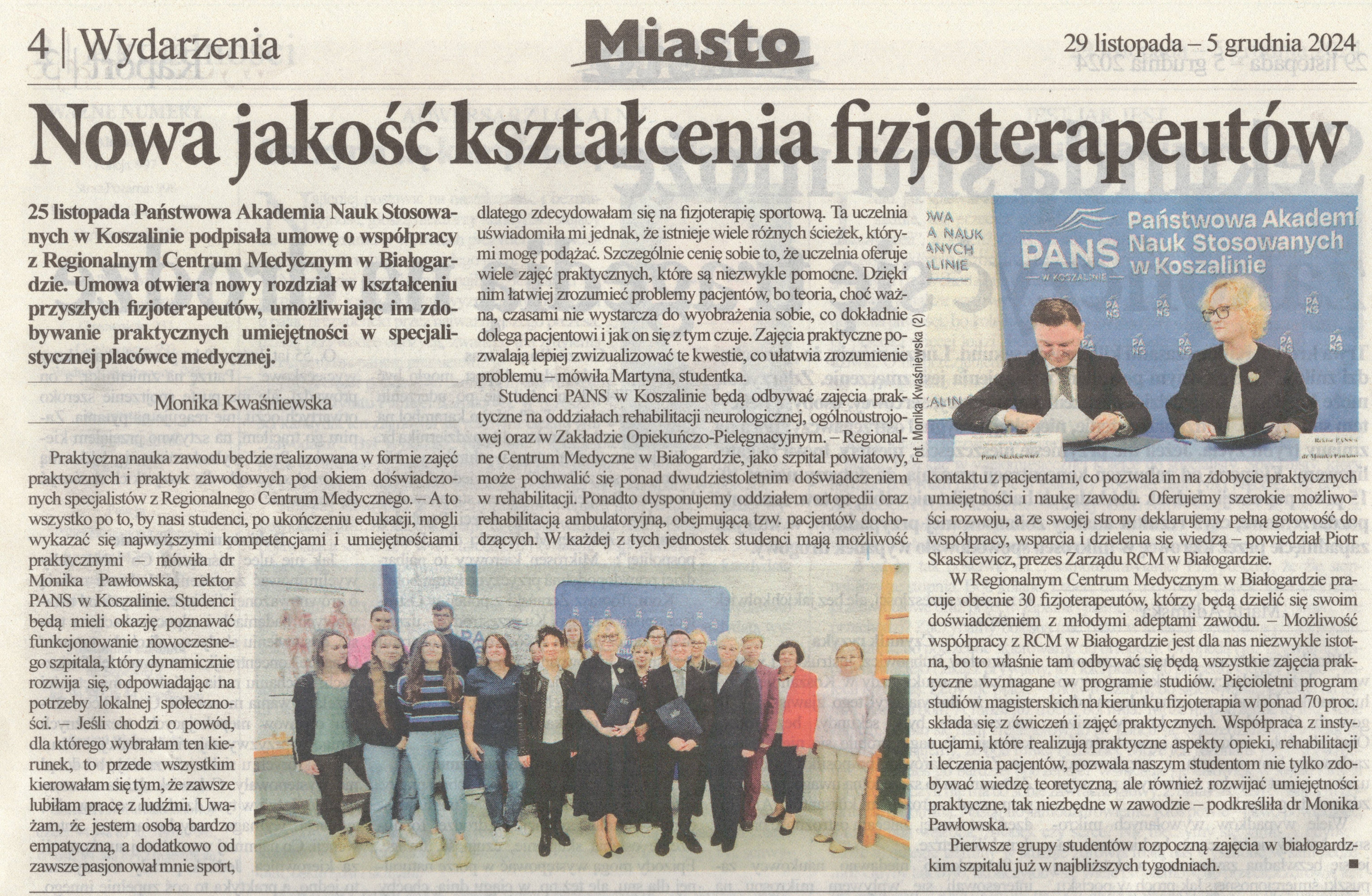 - Nowa jakość kształcenia fizjoterapeutów - "Miasto" 29.11-5.12.2024