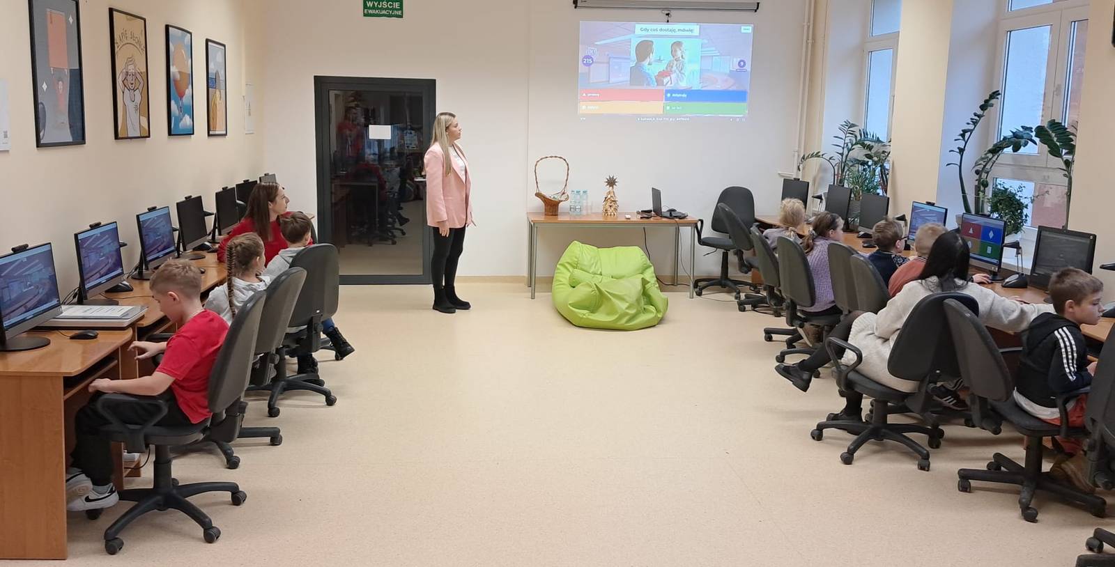 W zajęciach udział wzięły też studentki 3 roku PPiW, które w ramach zajęć praktycznych z przedmiotu „Podstawy edukacji informatycznej” z mgr Beatą Żuber wykonały materiały promujące imprezę: zaproszenie, dyplom, plakat i inne materiały w formie multimedialnej. Przyszłe nauczycielki wykorzystały atrakcyjne technologie informacyjno-komunikacyjne w pracy nauczyciela edukacji wczesnoszkolnej, m.in. prezentację w Canvie, oraz ulubiony przez dzieci, popularny interaktywny quiz w aplikacji Kahoot zawierający elementy grywalizacji dotyczący dobrego zachowania, który poprowadziła studentka Zuzanna Bura.