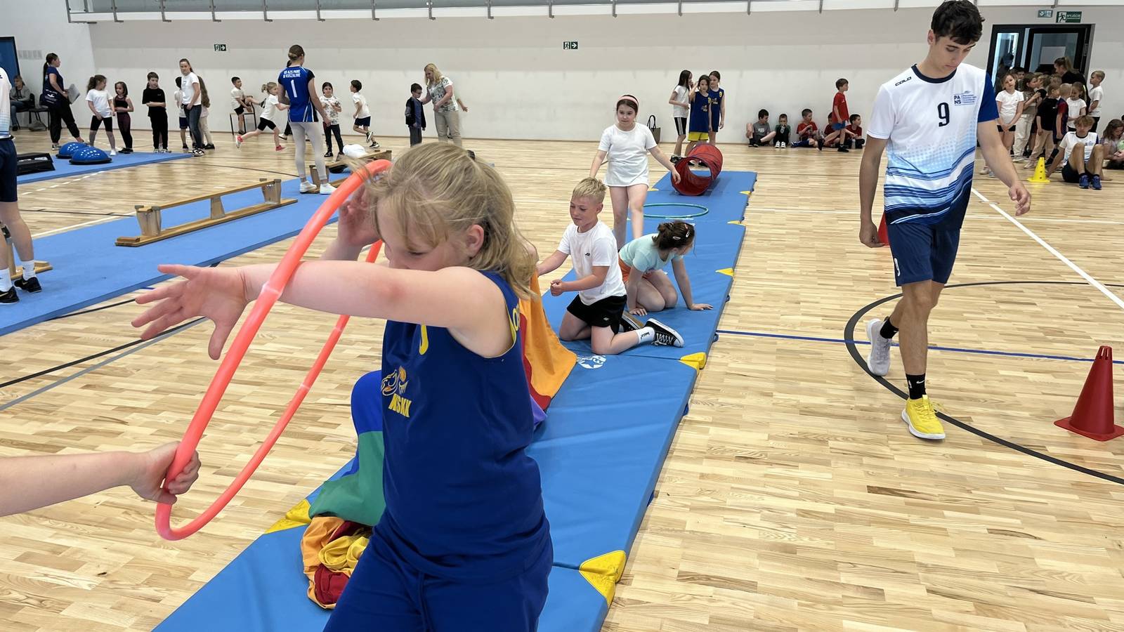 2 czerwca 2025 roku na hali PANS w Koszalinie odbyło się wyjątkowe wydarzenie – Dzień sportu z okazji Dnia Dziecka, przygotowany z inicjatywy studentów Instytutu Kultury Fizycznej i Zdrowia. Spotkanie miało charakter integracyjno-rekreacyjny i zostało zorganizowane z myślą o najmłodszych – uczniach klas 1–2 ze SP10 Koszalin Szkoła Podstawowa nr 10 im. Stefana Żeromskiego w Koszalinie. Gospodarzem wydarzenia była dr Aleksandra Sajek – Dyrektor Instytutu Kultury Fizycznej i Zdrowia. Wśród zaproszonych gości obecna była również Pani Beata Czapla – Dyrektor SP nr 10 w Koszalinie, wraz z nauczycielami oraz grupą uczniów klas 1–2.