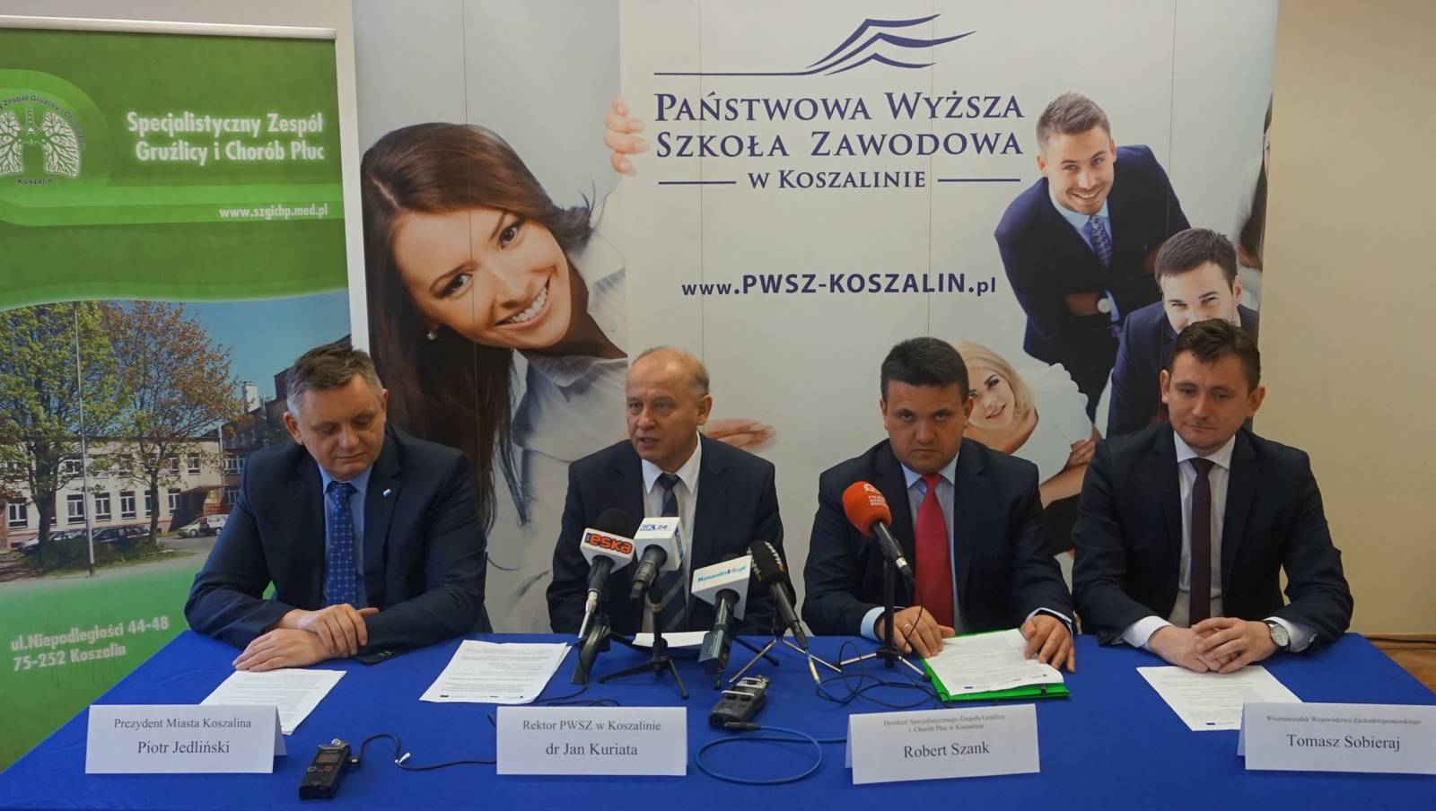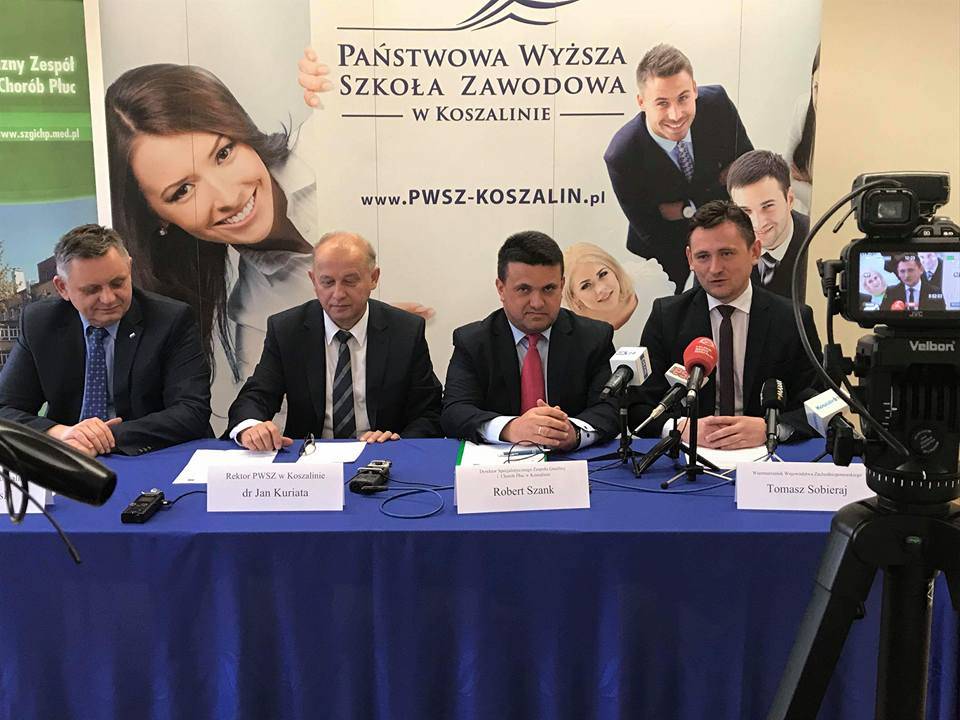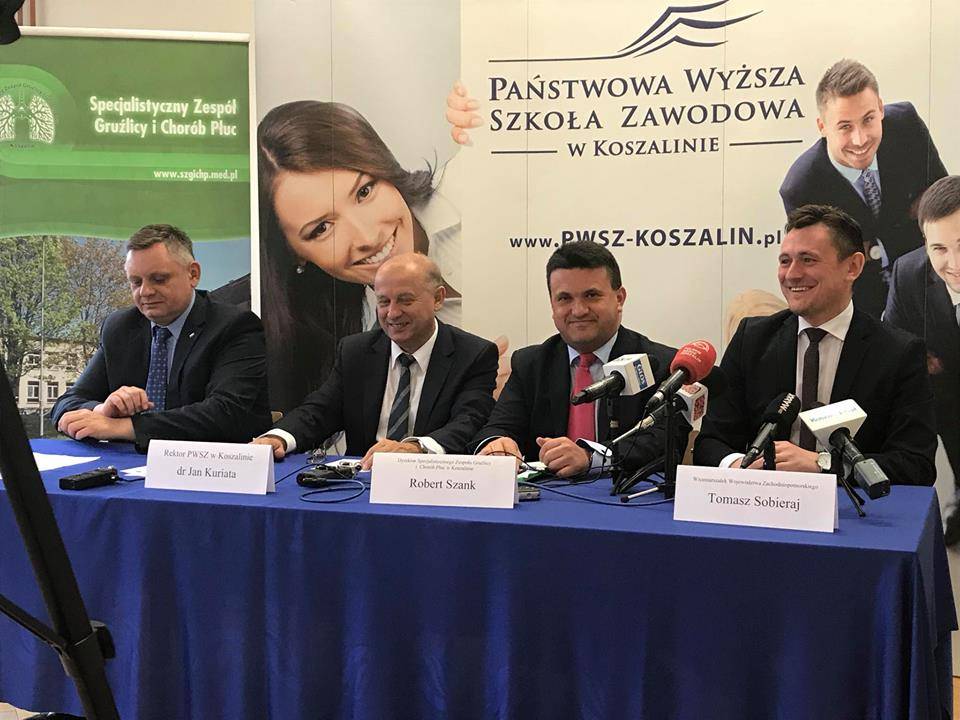 Głównym partnerem Uczelni jest Specjalistyczny Zespół Gruźlicy i Chorób Płuc w Koszalinie (na zdjęciu Dyrektor p. Robert Szank). To jedyne takie centrum w północnej Polsce i jedno z 30 powstających obecnie w naszym kraju. Centrum powstanie dzięki unijnemu programowi - Program Operacyjny Wiedza Edukacja Rozwój - realizowanemu przez Ministerstwo Zdrowia (2.600.000 zł). Uczelnia została wsparta finansowo przez samorząd koszaliński wraz z prezydentem p. Piotrem Jedlińskim oraz Zarząd Województwa Zachodniopomorskiego, który na konferencji reprezentował wicemarszałek p.Tomasz Sobieraj. Planowane otwarcie Centrum to październik 2018 roku.