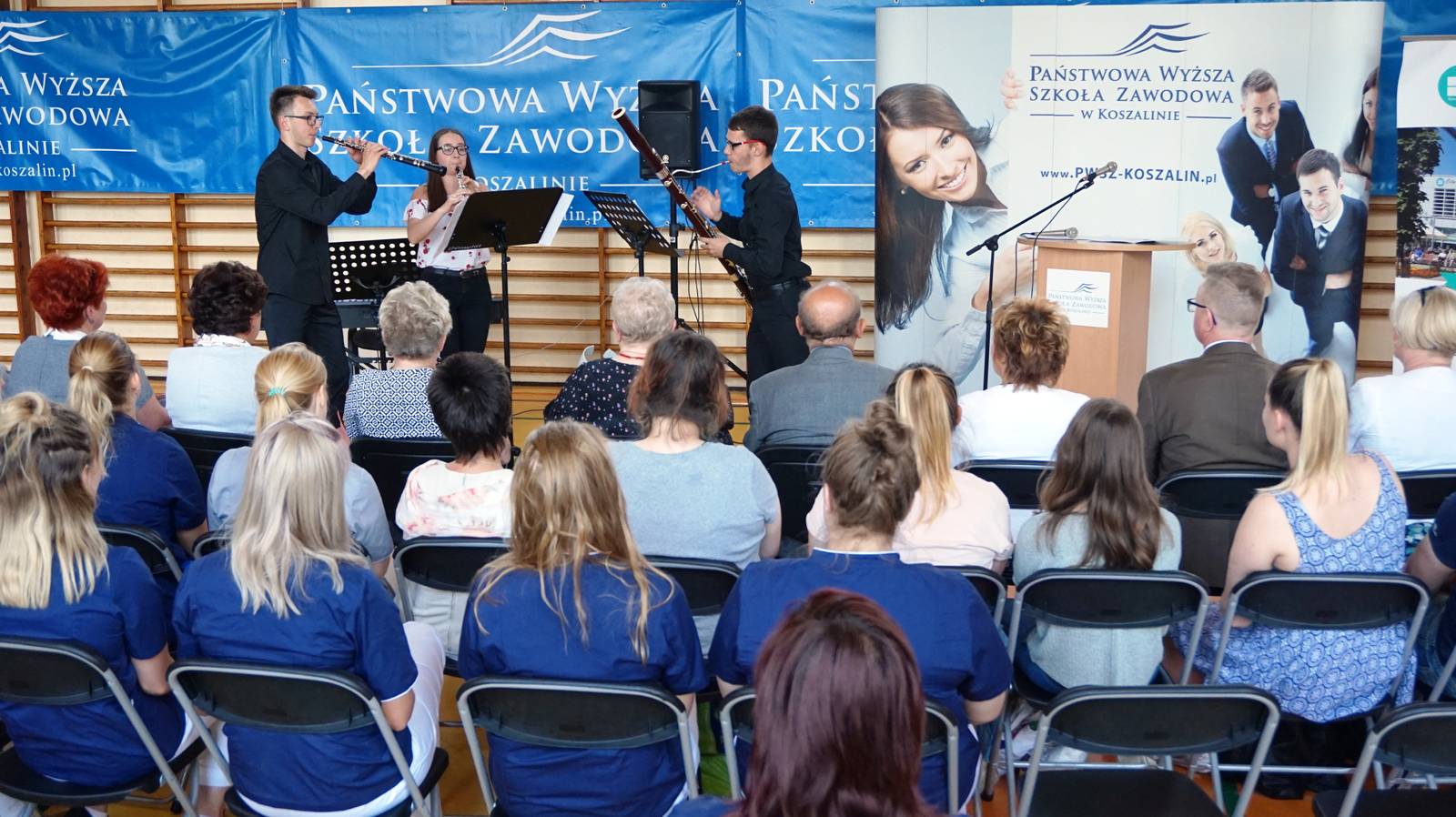 W dniu 14.05.2018r. z inicjatywy studentów 1 roku i wykładowców Zakładu Pielęgniarstwa w murach uczelni odbyły się uroczyste obchody Międzynarodowego Dnia Pielęgniarki i Położnej. W roku 1965 Międzynarodowa Rada Pielęgniarek (International Council of Nurses) ogłosiła 12 maja - dzień urodzin Florence Nightingale Międzynarodowym Dniem Pielęgniarek. Temat przewodni tegorocznych obchodów to: „Pielęgniarki głosem ku zmianie, na rzecz zdrowia jako podstawowego prawa człowieka”. Uroczystym obchodom towarzyszył koncert muzyki klasycznej w wykonaniu uczniów Zespołu Państwowych Szkół Muzycznych im. Grażyny Bacewicz w Koszalinie. Niezwykłego kolorytu obchodów dodał fakt, iż studentki, pełniące podczas uroczystości funkcję prelegentek były ubrane w repliki strojów pielęgniarskich z XIX wieku. Z inicjatywy studentów I roku kierunku pielęgniarstwa przed uczelnią odbył się piknik prozdrowotny: badanie piersi na fantomie, badanie ciśnienia oraz tętna, pokaz pierwszej pomocy, konkursy i zabawy dla dzieci.