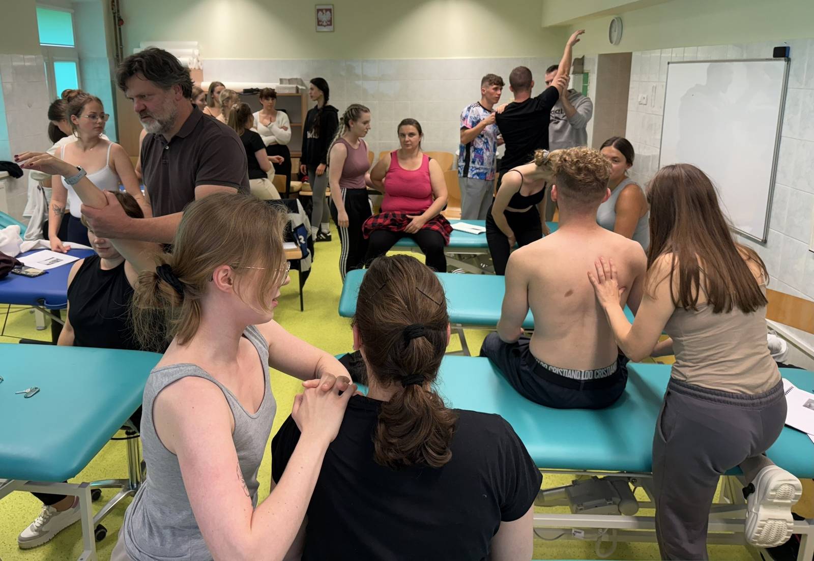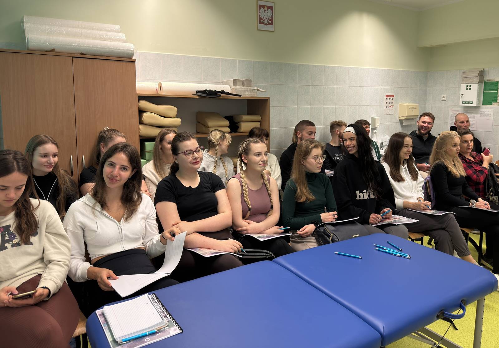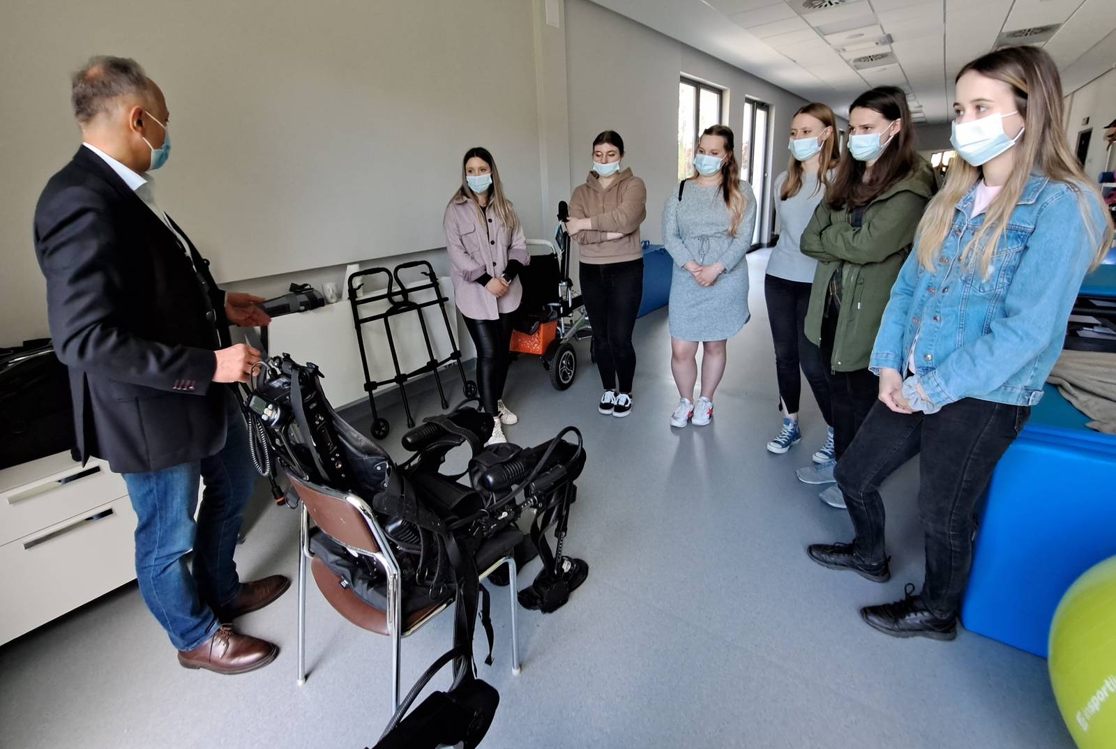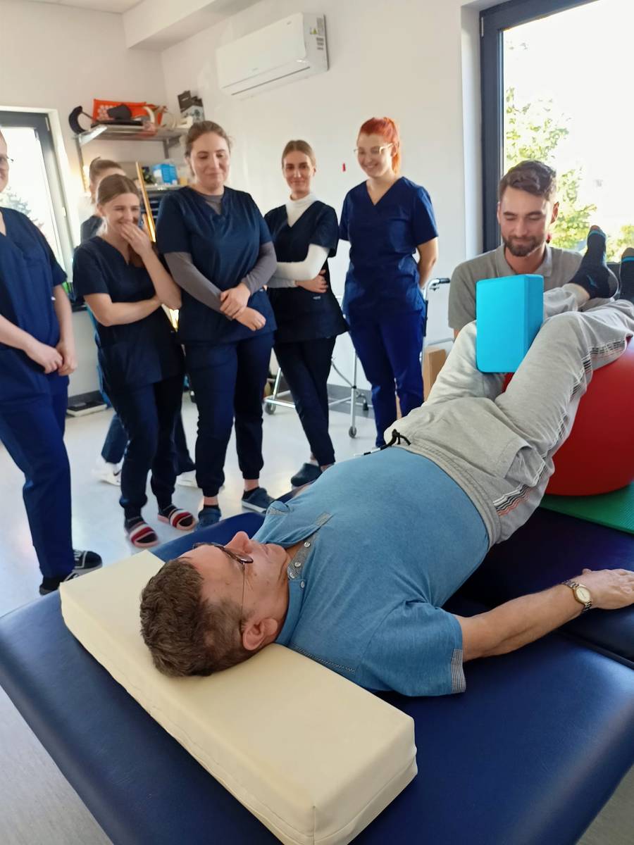 Studenci zapoznali się ze specyfiką pacjenta neurologicznego w różnych schorzeniach neurologicznych oraz mieli również okazję zobaczyć egzoszkielet i jego praktyczne zastosowanie.