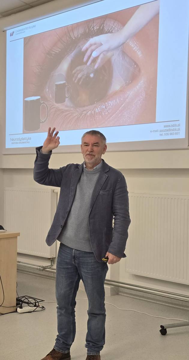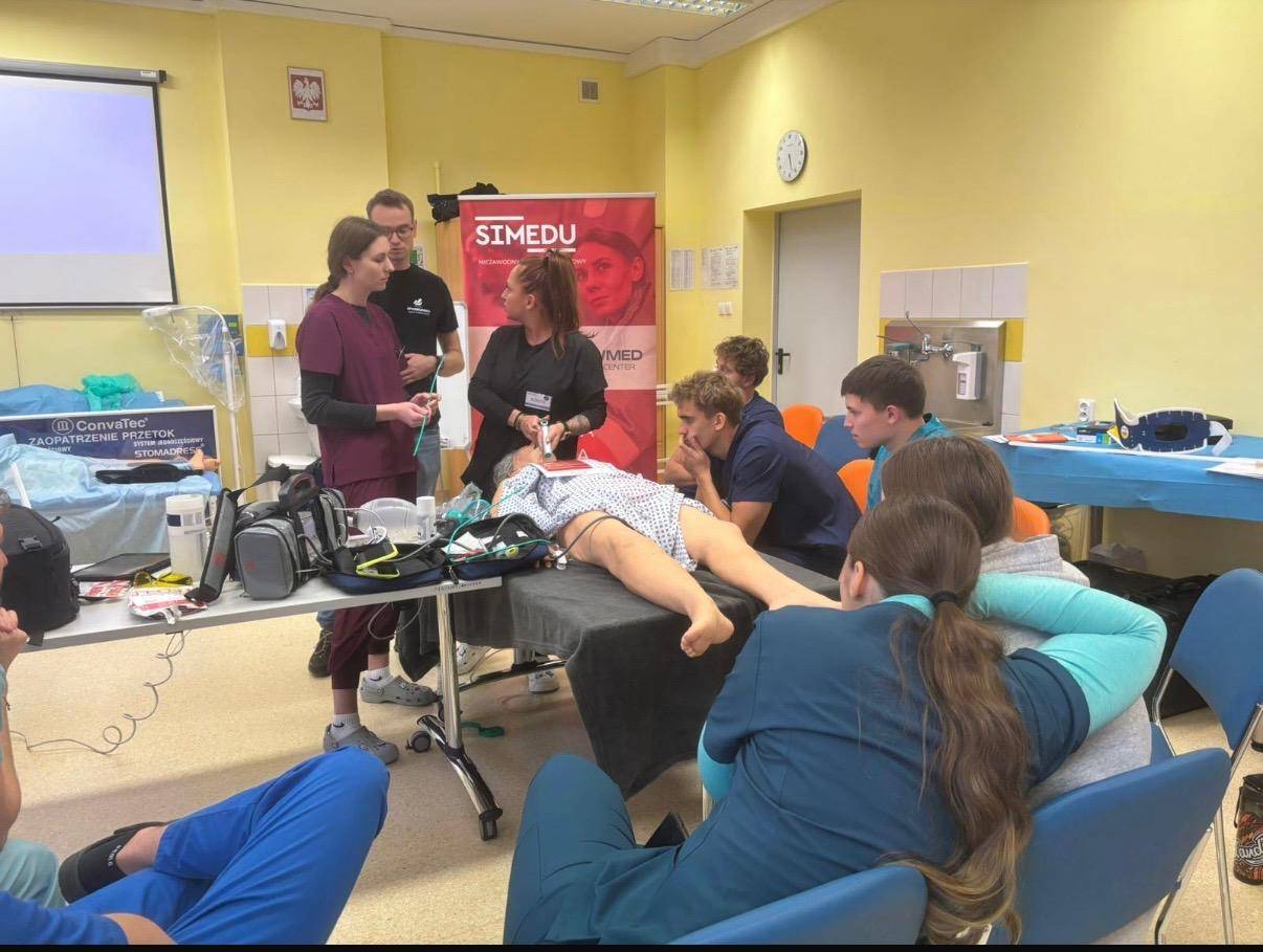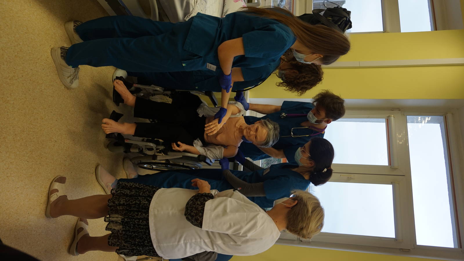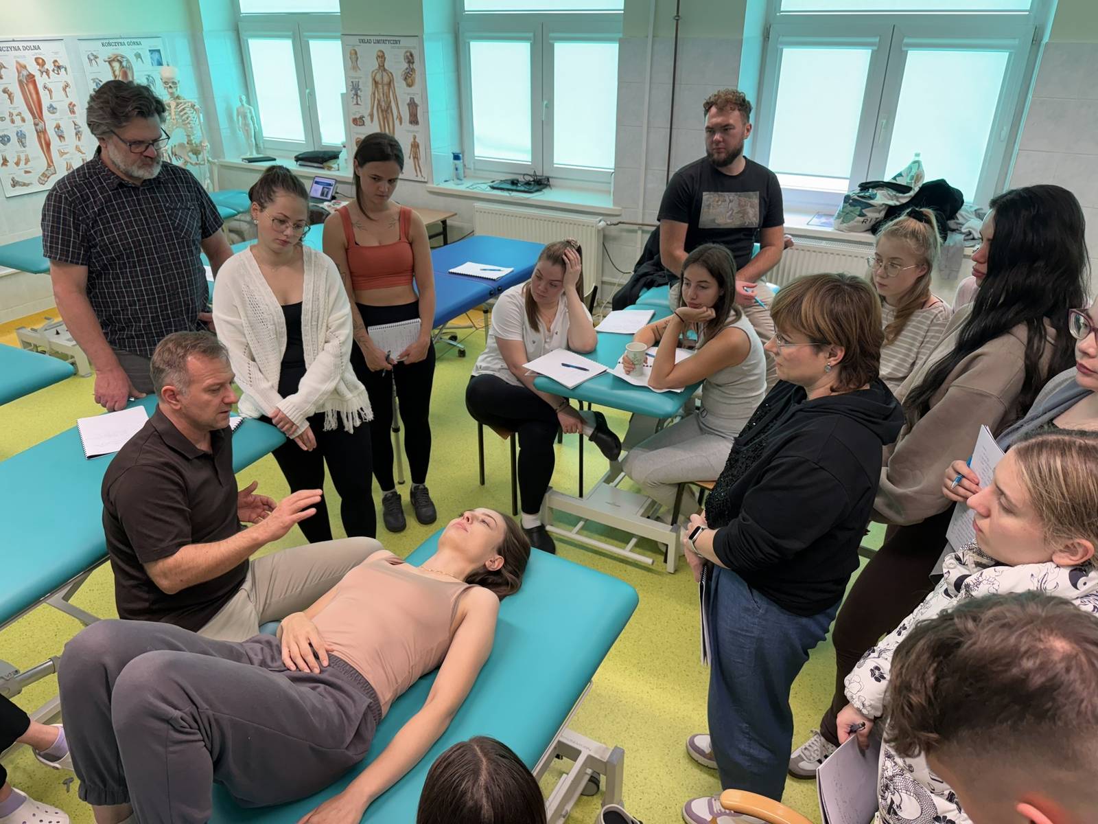 Studenci zapoznali się ze specyfiką pacjenta neurologicznego w różnych schorzeniach neurologicznych oraz mieli również okazję zobaczyć egzoszkielet i jego praktyczne zastosowanie.
