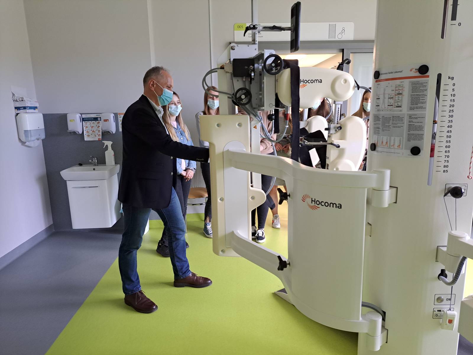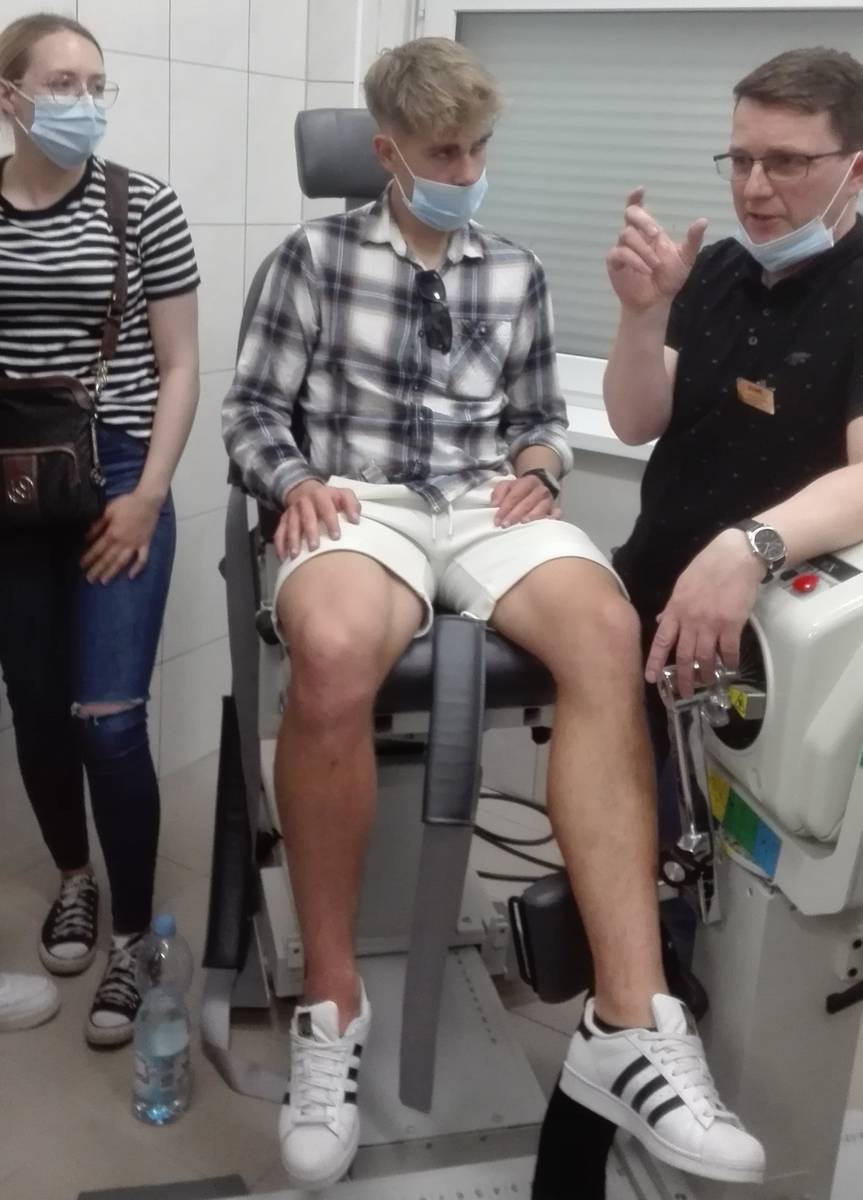 Dzięki uprzejmości dr Bogusława Korczyńskiego studenci mieli okazję poznać nowoczesną bazę zabiegową i zapoznać się z rehabilitacją po urazie rdzenia kręgowego z robotyką. Przyszli fizjoterapeuci mieli okazję zobaczyć EGZOSZKIELET, LOKOMAT, ROBOT LUNA EMG, ATLAS HYDRAULICZNY, BIEŻNIĘ Z BIOFIDBEKIEM. Opiekunem grupy była dr n.med. Joanna Krawczyk.