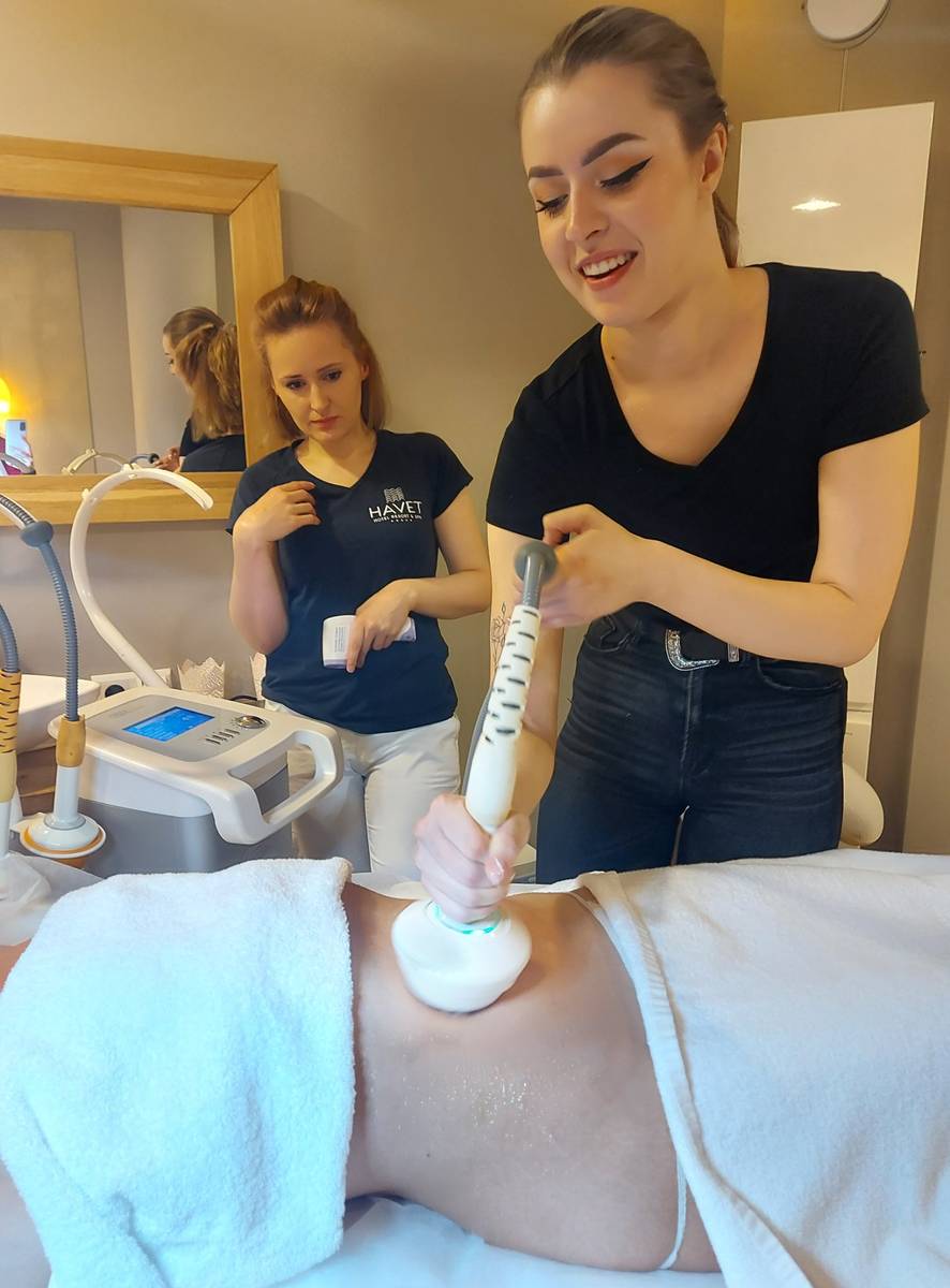 Dzięki środkom z programu Ministerstwa Edukacji i Nauki pn. "Dydaktyczna Inicjatywa Doskonałości" studentki I, II, III roku kierunku kosmetologia zapoznały się z funkcjonowaniem Wellness & SPA HAVET w Dźwirzynie. Podczas wizyty została przedstawiona specyfika pracy kosmetologa w SPA. Studentki zwiedziły gabinety SPA i miejsca zabiegu rytualnego Hammam, poznały zabiegi rytualne oraz Hi-TECH, a także pod nadzorem pracowników wykonywały zabieg maxsimus na brzuch i twarz, poznały procedury wykonania japońskiego masażu twarzy, tajskiego masażu stemplami ziołowymi, masażu pałeczkami bambusowymi na nogi, masażu tybetański i hammam. Bardzo dziękujemy pani Natalii Koszuk Kierownik SPA, Pani Karolinie Lewnadowskiej oraz całemu zespołowi za fachowo przekazaną wiedzę i profesjonalizm jakiego doświadczyliśmy. Kontakt z interesariuszami zewnętrznymi jest niezwykle ważny w kształceniu praktycznym!