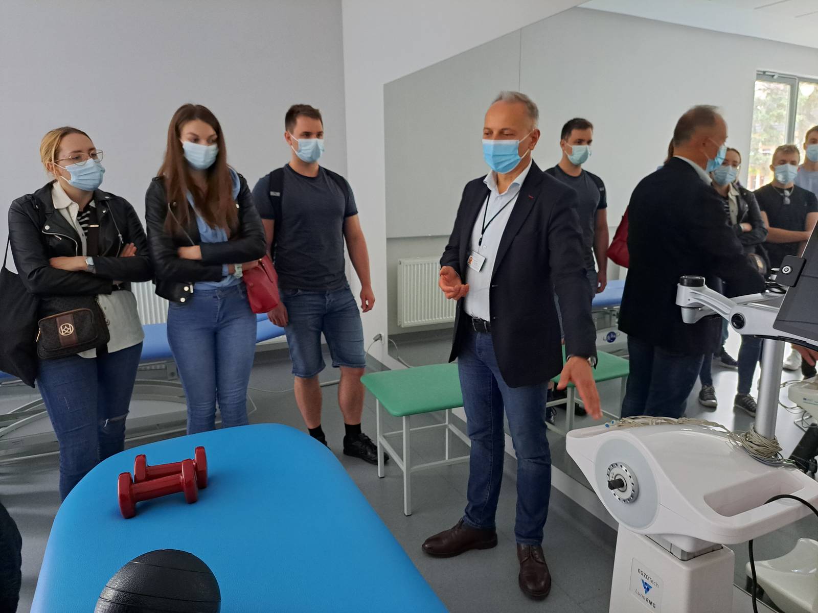 W dniu 26.05.2022 r. studenci III I IV roku kierunku Fizjoterapia mieli okazję zwiedzić Instytut Badawczy Innowacyjnych Metod Po Urazach Rdzenia Kręgowego w kompleksie sanatoryjnym MIESZKO I i II w szpitalu uzdrowiskowym w Kamieniu Pomorskim. W Instytucie Badawczym prowadzone były badania nad skutecznymi metodami rehabilitacji z wykorzystaniem robotów oraz klasycznych zabiegów, w tym także balneologicznych, a zdobyte doświadczenia od razu wykorzystywane były u pacjentów. W odzyskaniu sprawności pacjentom na co dzień pomagał doświadczony zespół specjalistów z zakresu rehabilitacji: profesorowie uniwersytetów, konsultanci międzynarodowi, lekarze, fizjoterapeuci. Podczas realizacji projektu badawczego Instytut Badawczy współpracował z Warszawskim Uniwersytetem Medycznym.