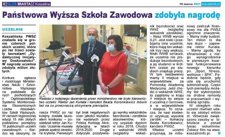 Wyróżnienie w konkursie dla PWSZ. Milion złotych dla placówki - Koszalininfo.pl - 17.03.2021