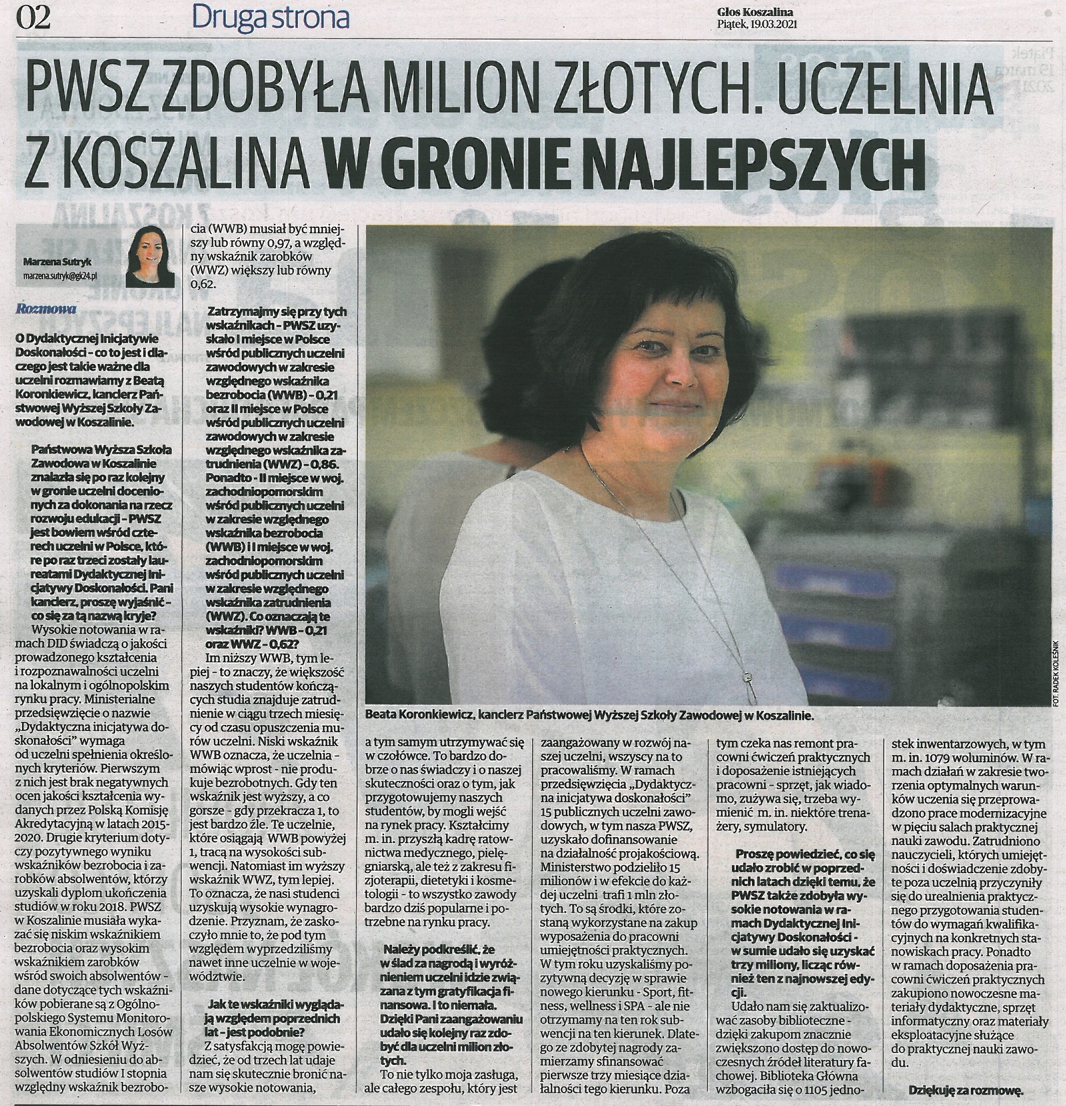 PWSZ zdobyła milion złotych - wywiad z Kanclerz PWSZ - skan GK 19.03.2021