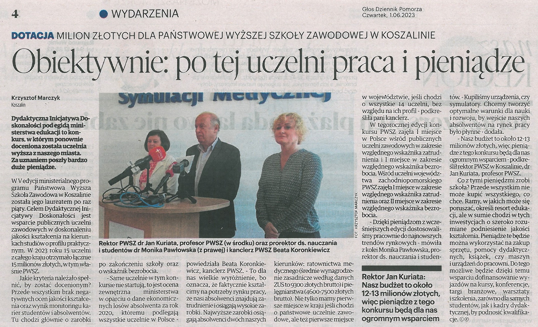 Milion złotych dla Państwowej Wyższej Szkoły Zawodowej w Koszalinie - gk24.pl - 31.05.2023