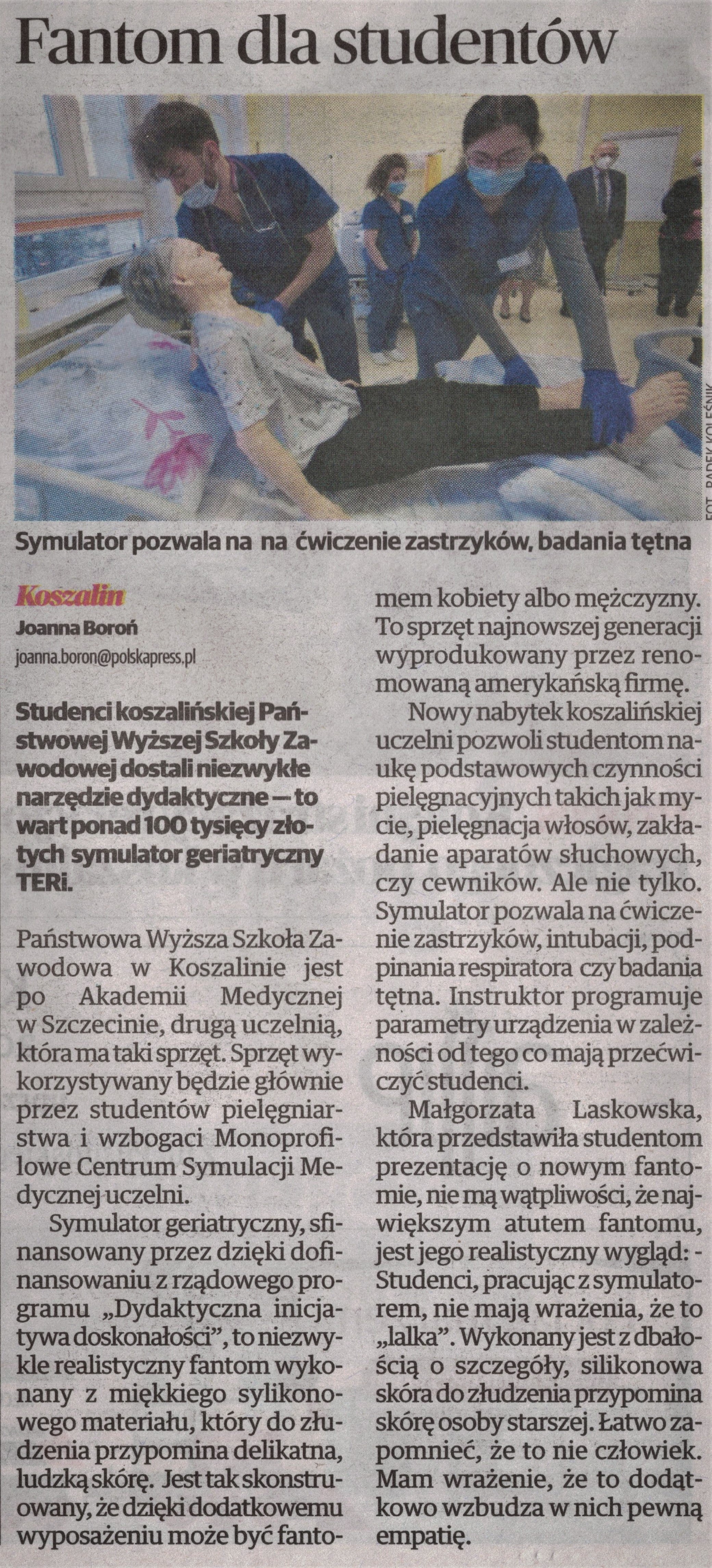 Nowoczesny fantom geriatryczny pomoże w nauce studentom PWSZ - GK - 28.01.2022