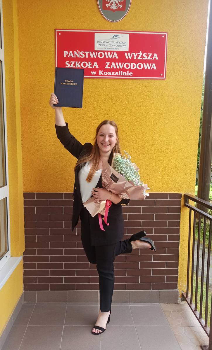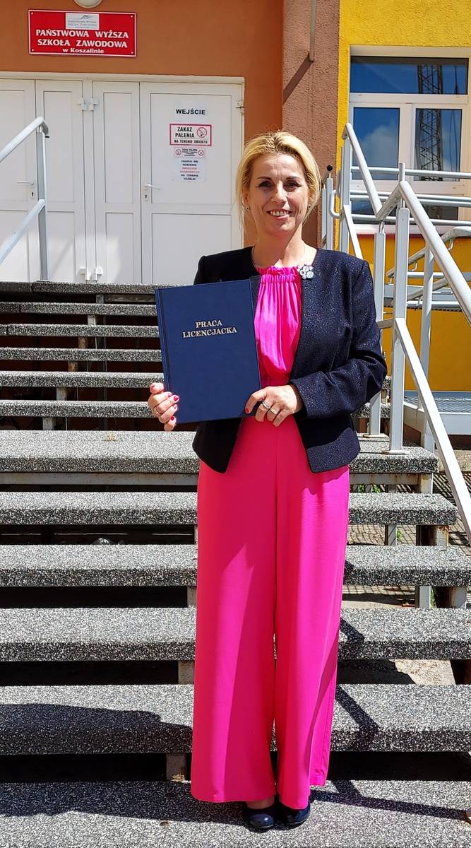 20 czerwca - nadszedł ten upragniony moment – obrona pracy licencjackiej i ukończenie studiów licencjackich na kierunku Pedagogika, specjalność: Edukacja elementarna i język angielski. Chciałam serdecznie podziękować wszystkim pracownikom uczelni Państwowej Wyższej Szkoły Zawodowej w Koszalinie za wskazówki, ciepłe słowa i praktyczne rady, które mogłam i zawsze będę wykorzystywać w swojej pracy zawodowej jako nauczyciel wychowania przedszkolnego oraz języka angielskiego. Przez ostatnie dwa lata uczelnia była moim drugim domem. Zachęcam wszystkich, którzy pragną rozwijać swoje zainteresowania oraz doskonalić się zawodowo do podjęcia trudu i przeżycia takiej satysfakcji, jaką ja dziś posiadam.