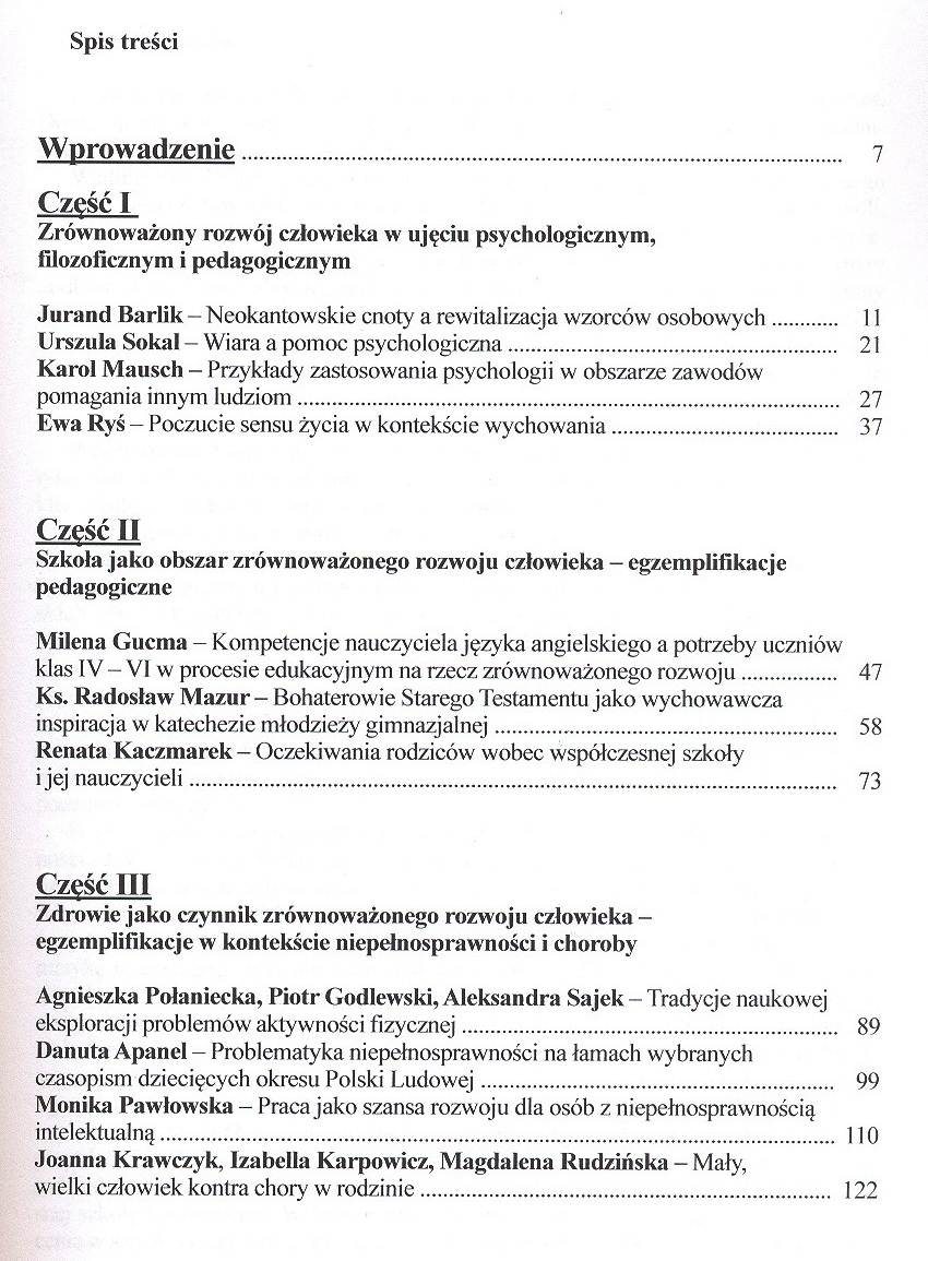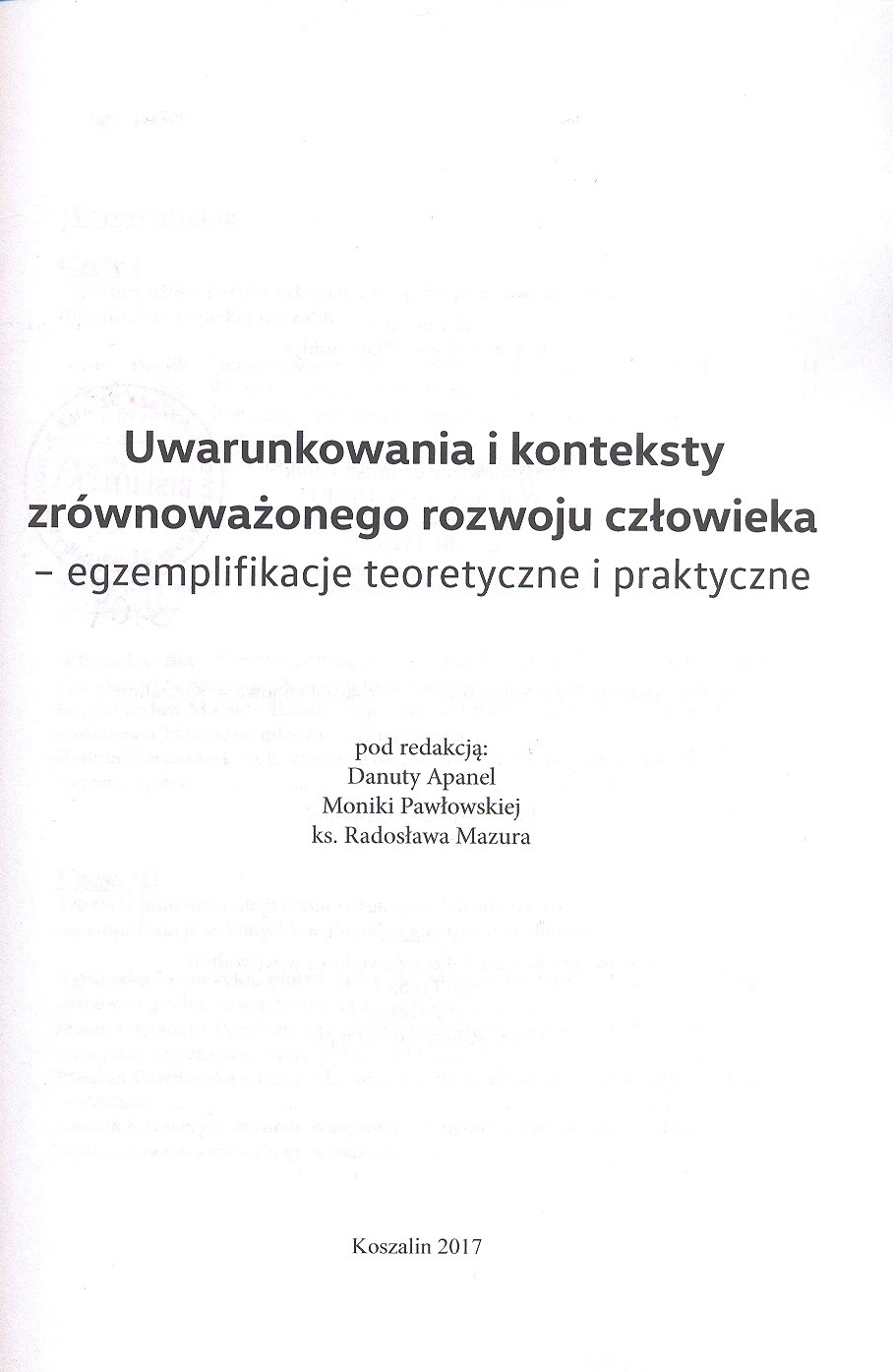 Uwarunkowania i konteksty zrównoważonego rozwoju człowieka – egzemplifikacje teoretyczne i praktyczne.