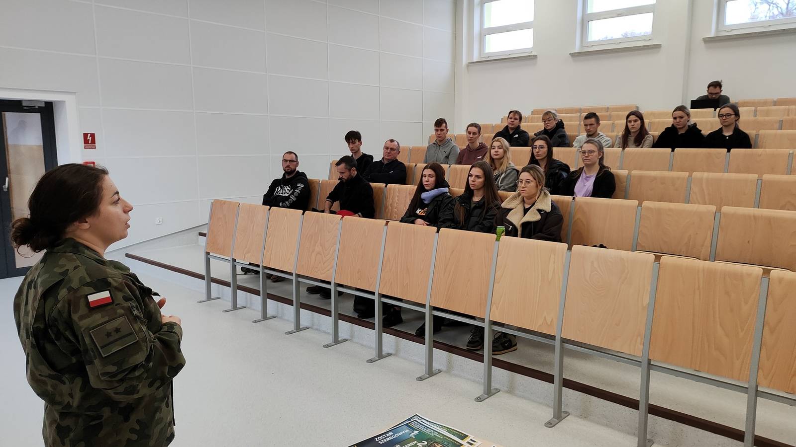 Gościem specjalnym była przedstawicielka Wojskowe Centrum Rekrutacji WCR Koszalin ppor. Aleksandra Grąbczewska, która wprowadziła studentów w świat służby wojskowej.