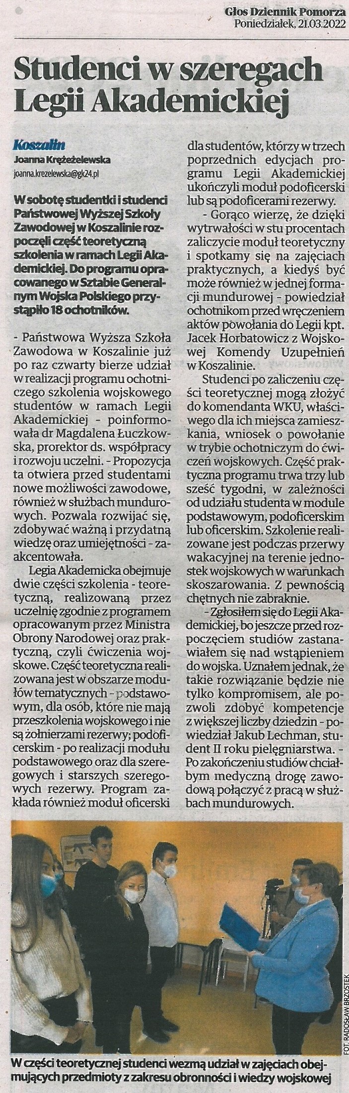 1) Ochotnicy, studenci PWSZ w Koszalinie, wstąpili w szeregi Legii Akademickiej - gk24.pl - 19.03.2022