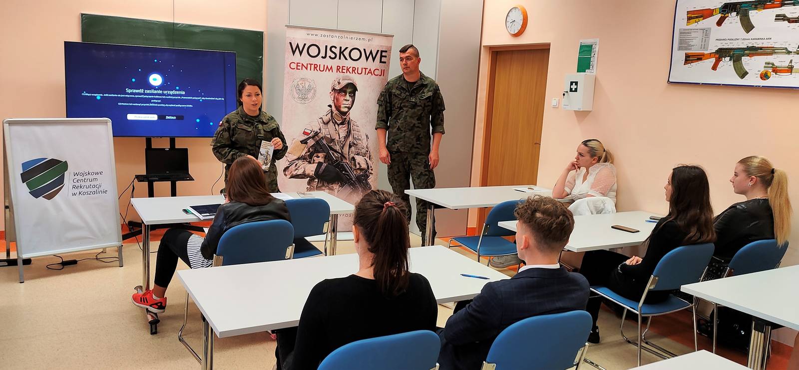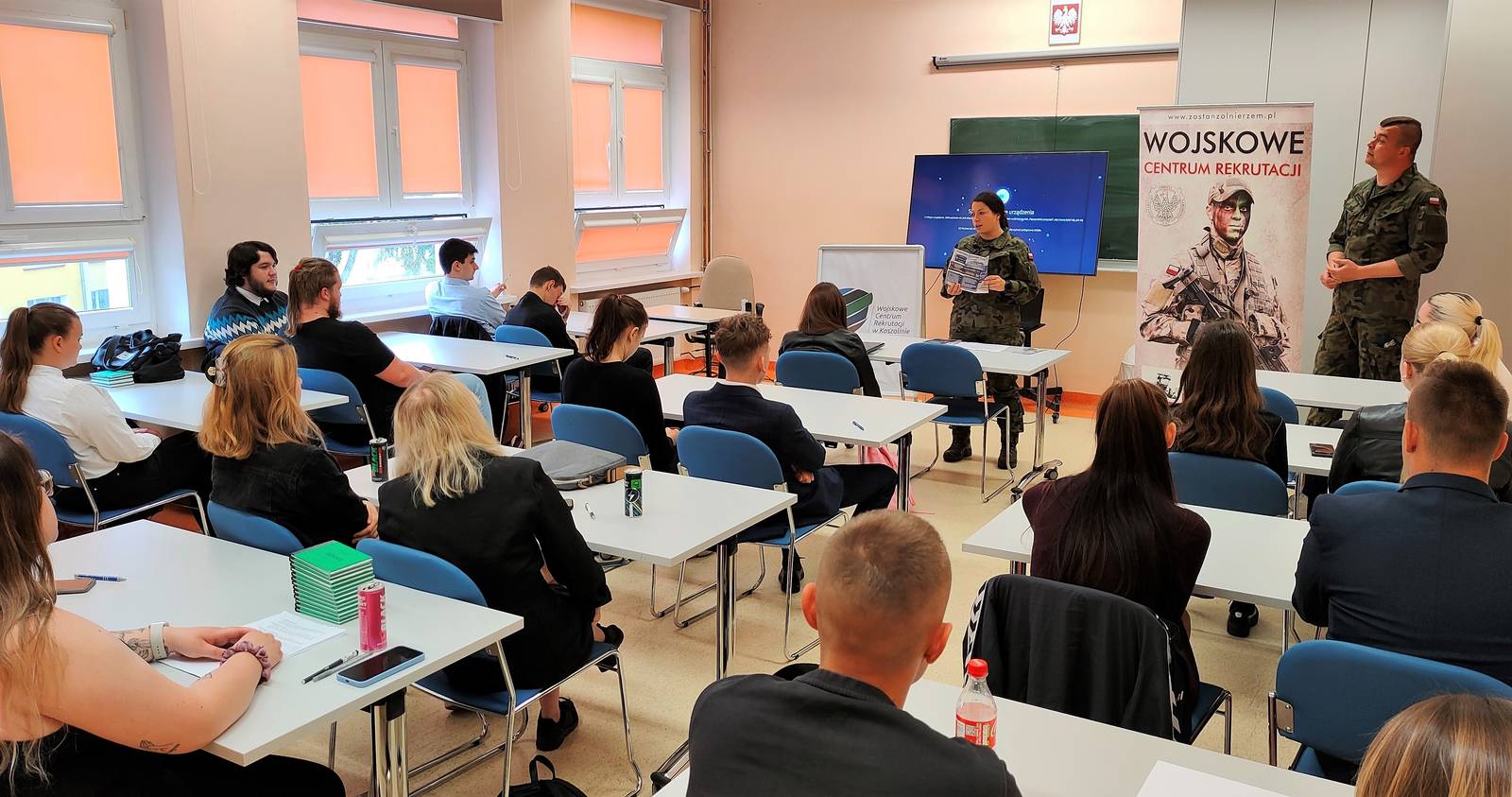 Studenci #BezpieczeństwoNarodowe PWSZ w Koszalinie spotkali się z przedstawicielami Wojskowego Centrum Rekrutacji w Koszalinie WCR Koszalin: ppor. Aleksandrą Grąbczewską i st. sierż. Piotrem Chmielewskim, którzy przedstawili studentom zalety służby wojskowej i aktualne oferty oraz zasady wstąpienia do wojska i #LegiaAkademicka.