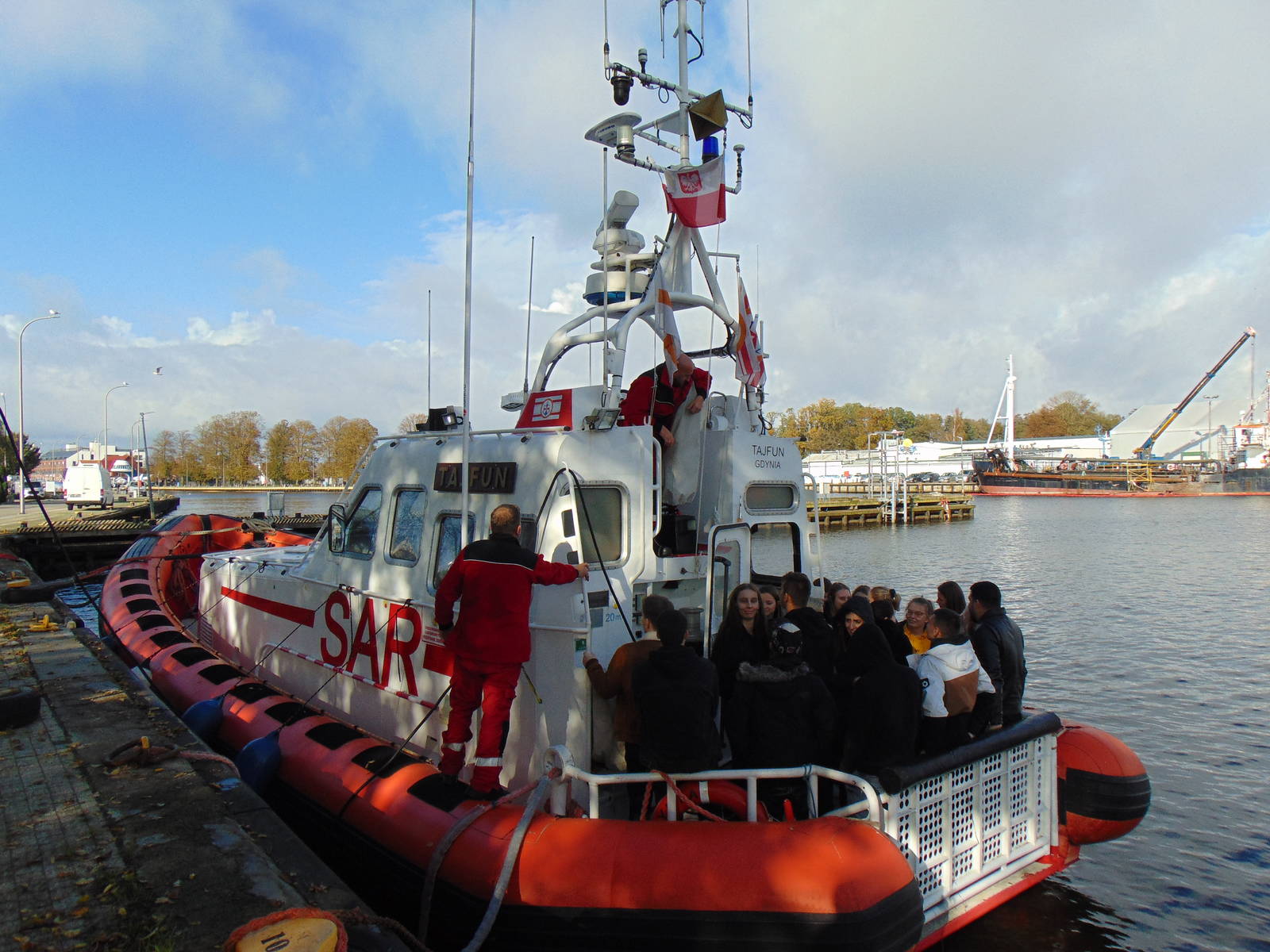 Studenci poznali także rolę i zadania Grupy Lotniczej w Darłowie w zabezpieczeniu infrastruktury krytycznej oraz jednostek dostarczających surowce w ramach dywersyfikacji energetycznej RP. Poznali także specyfikę zagrożeń dla bezpieczeństwie wewnętrznego i zewnętrznego w kontekście wydarzeń na wschodniej granicy RP. Kolejnym elementem wizyty było zapoznanie studentów ze Stacją Ratownictwa Morskiego w Darłowie oraz jednostką SAR 1500 „Tajfun”. Ratownicy z SRM i kapitan m/s „Tajfun” zapoznali studentów z zasadami pracy i funkcjonowania Stacji w ramach systemu ratownictwa morskiego.