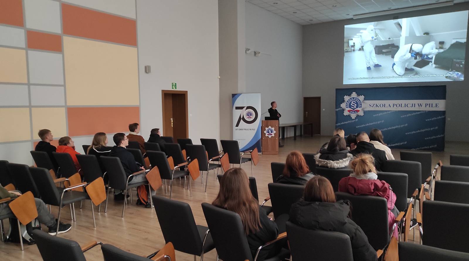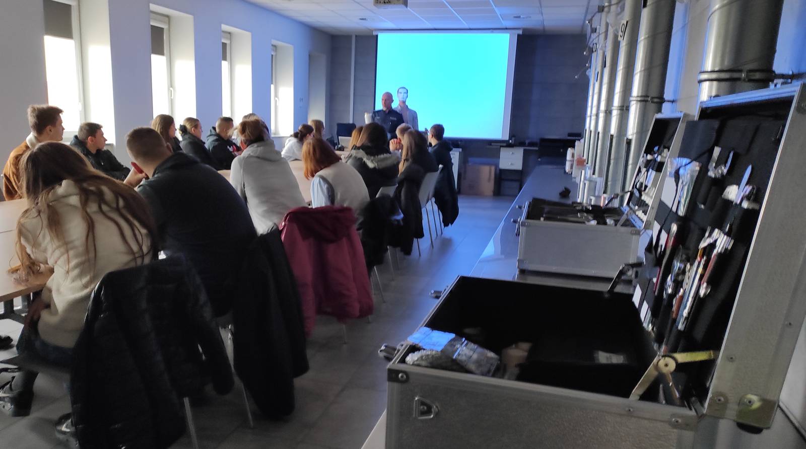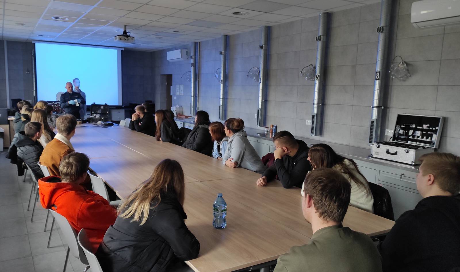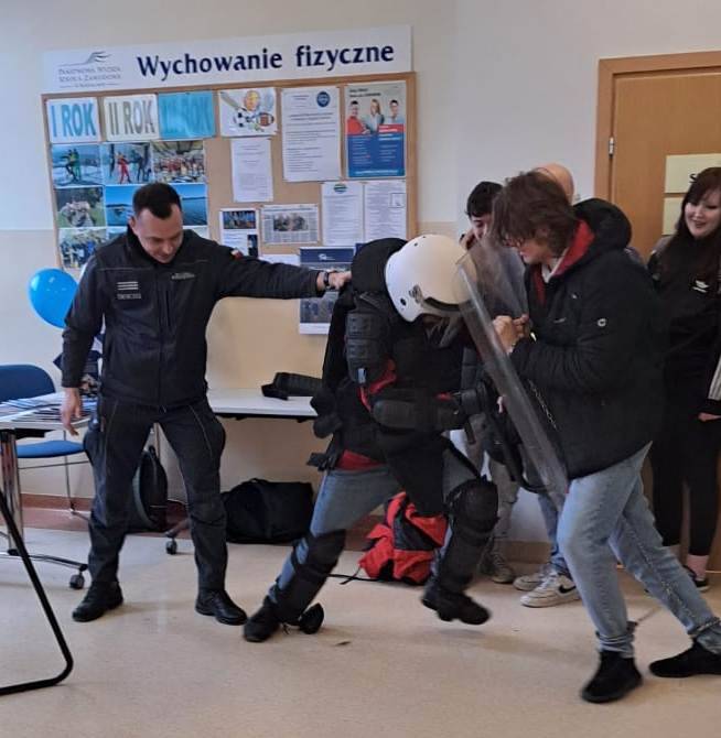 Studenci mieli możliwość poznania podstaw daktyloskopii, w tym zabezpieczania śladów oraz poznania innych czynności oględzinowych, realizowanych przez funkcjonariuszy w miejscu przestępstwa. Na strzelnicy obejrzeli aktualne wyposażenie strzeleckie Policji i przeszli krótki instruktaż bezpiecznego posługiwania się pistoletem typu „Walther P99”. Następnie w specjalistycznej pracowni wysłuchali zasad udzielania pierwszej pomocy a na zakończenie w reprezentacyjnej auli szkoły poznali jej rys historyczny oraz zasady rekrutacji do służby w Policji.