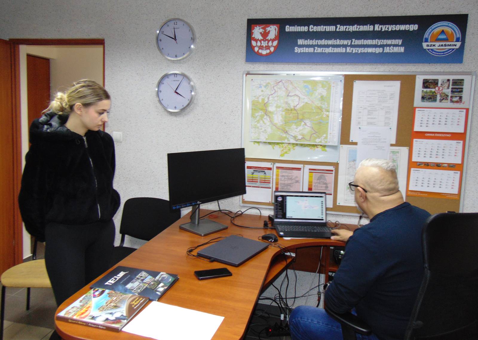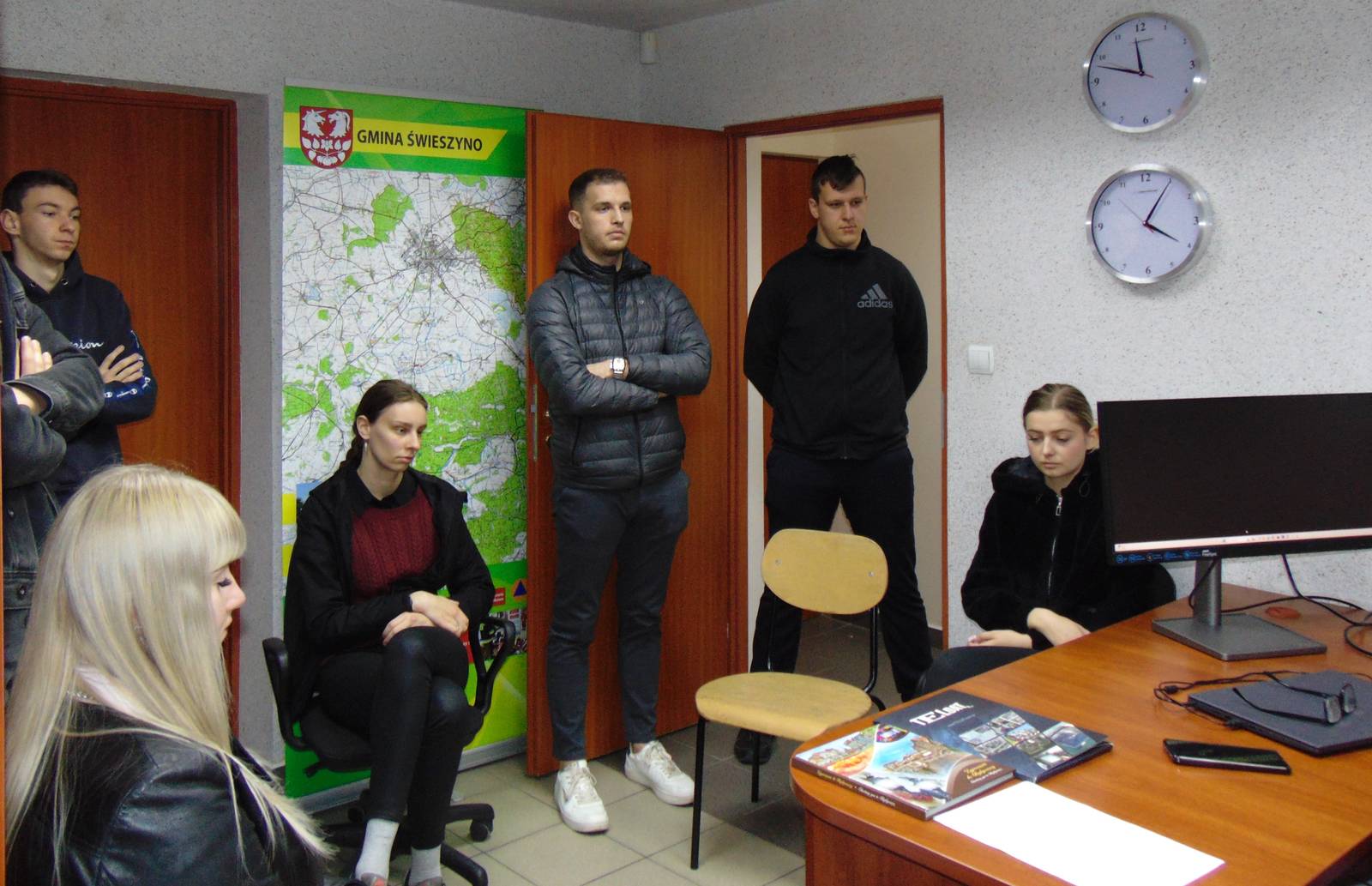 25.04.2024 r. studenci II roku kierunku Bezpieczeństwo Narodowe, wraz z wykładowcą dr. inż. Waldemarem Parusem, gościli w Urzędzie Gminy w Świeszynie, gdzie mieli możliwość zapoznania się ze strukturą organizacyjną i funkcjonowaniem oraz zadaniami Stanowiska Zarządzania Kryzysowego i Obronności. Wizyta studyjna pozwoliła na praktyczne zapoznanie studentów z funkcjonowaniem systemu zarządzania kryzysowego w gminie, realizacją zadań z zakresu zarządzania kryzysowego i obronności oraz obrony cywilnej, a także zasadami współpracy z instytucjami współdziałającymi. Współpraca z jednostkami samorządu terytorialnego oraz możliwość bezpośredniego poznania działania jednego z elementów systemu zarządzania kryzysowego ma duże znaczenie dla zapewnienia wysokiego poziomu kształcenia praktycznego studentów PWSZ w Koszalinie.