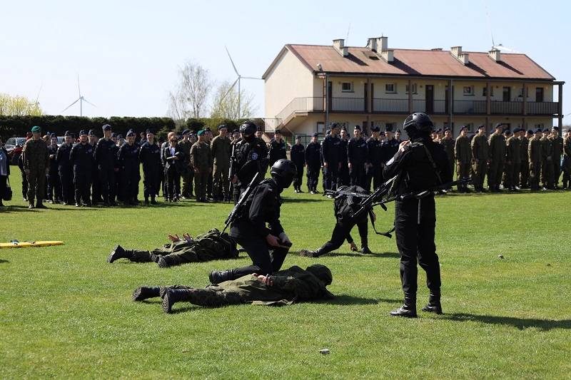 Dla zebranych uczestników spotkania uczniowie starszych klas przygotowali pokaz możliwości i umiejętności specjalistycznych z wykorzystaniem elementów pirotechnicznych, pojazdów służb mundurowych i ratowniczych. Po zakończeniu ceremonii ślubowania wszyscy zebrani udali się na teren szkoły, aby wziąć udział w Dniu Otwartej Szkoły.