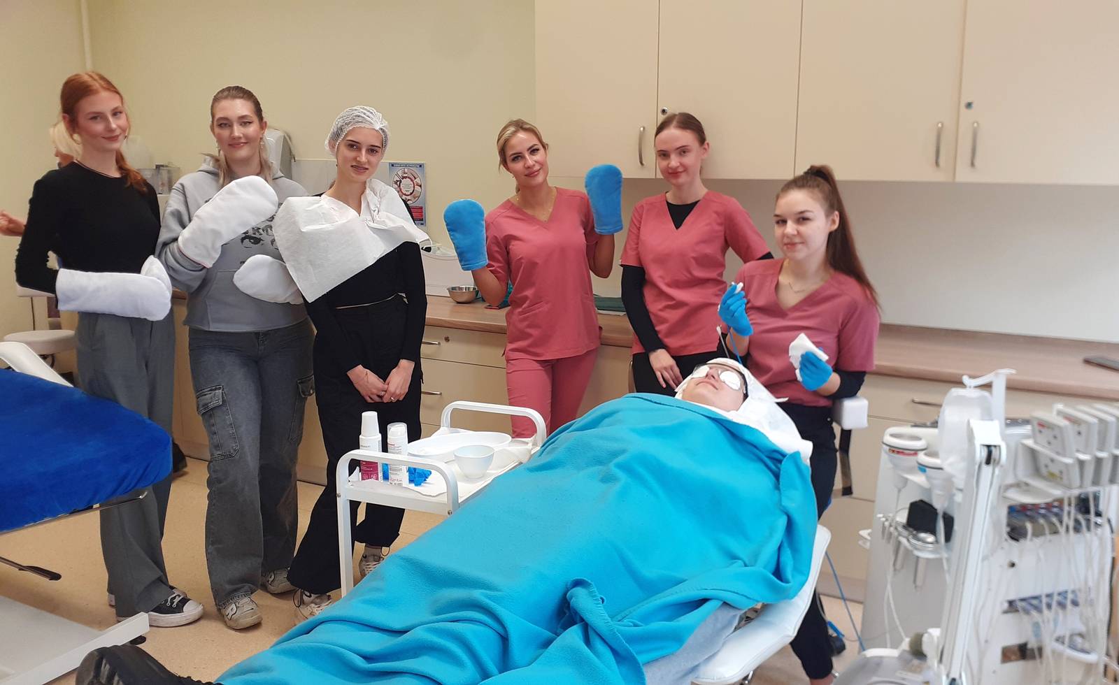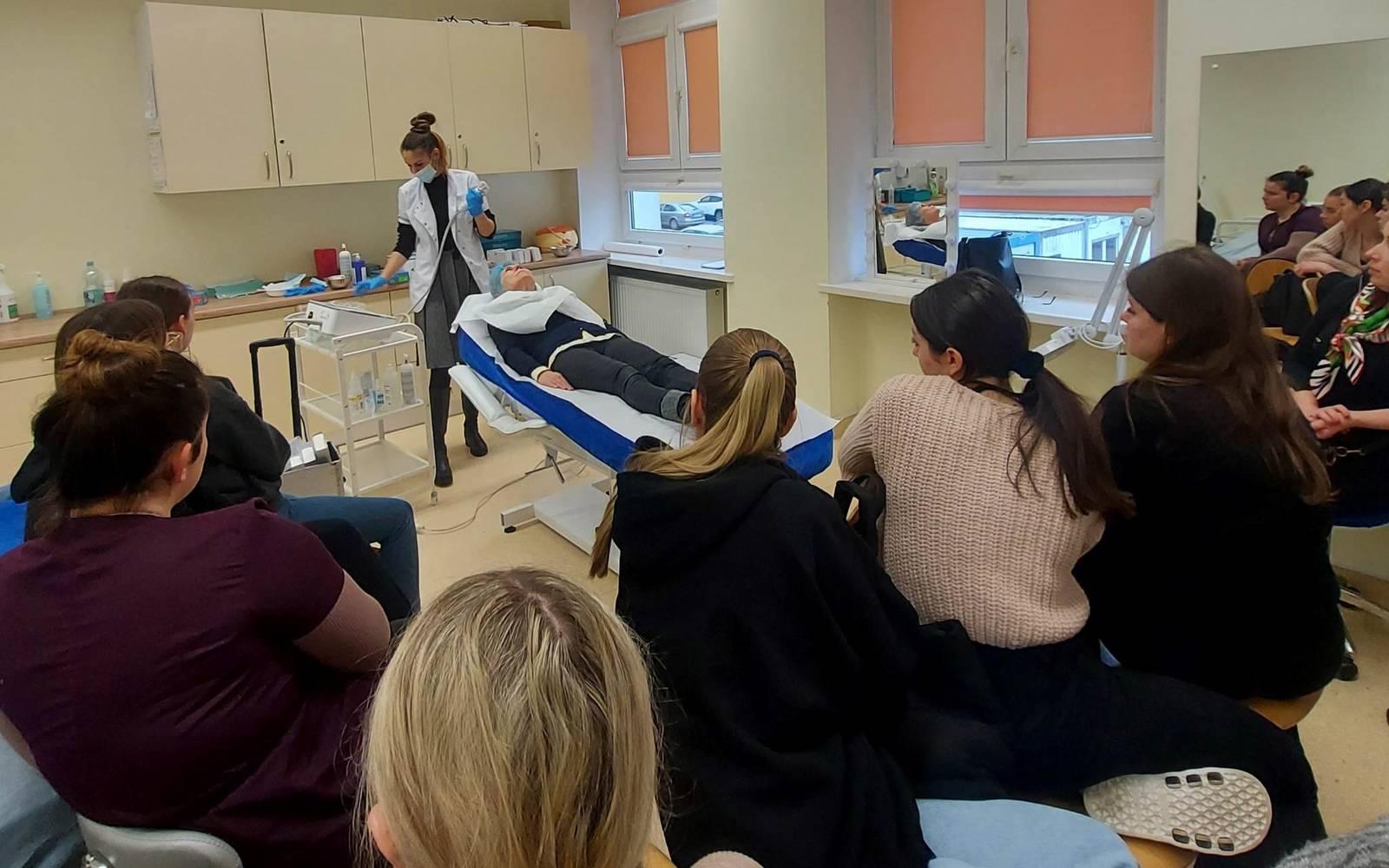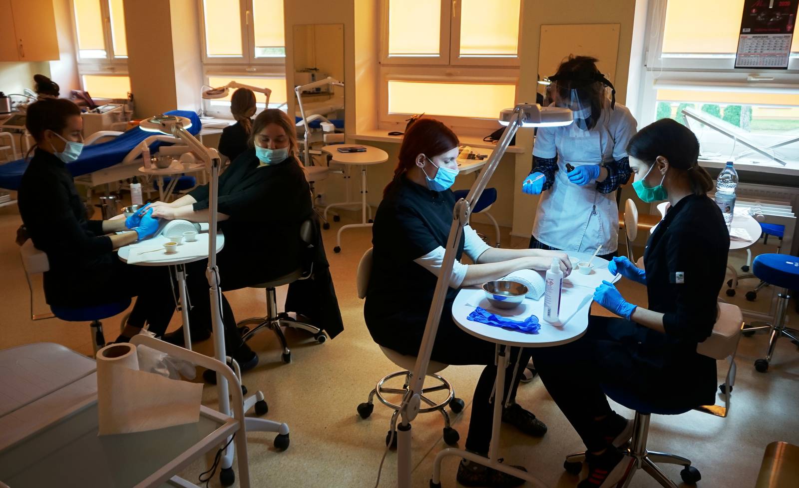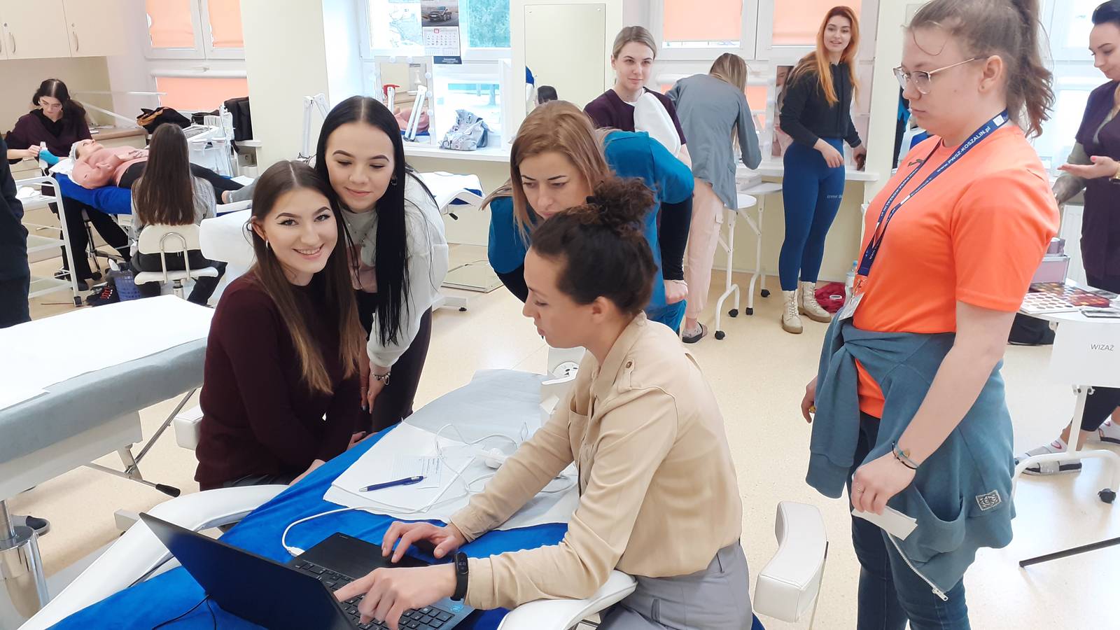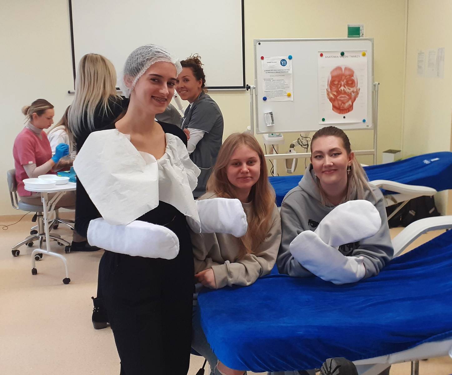 Pierwsze zajęcia praktyczne studentek 1 roku kosmetologii