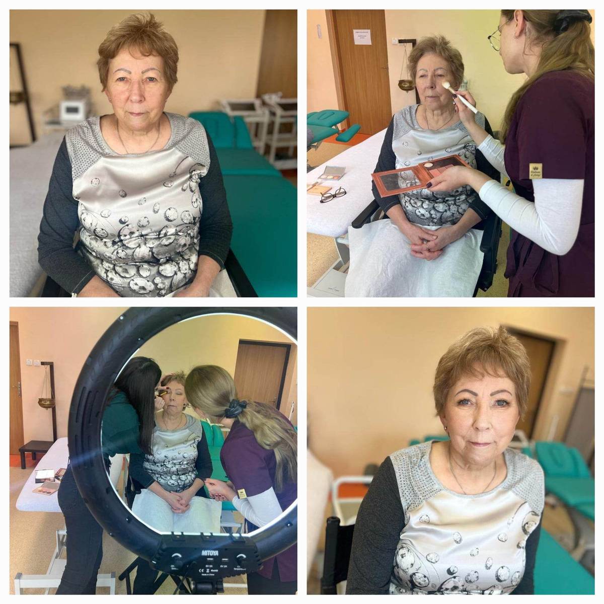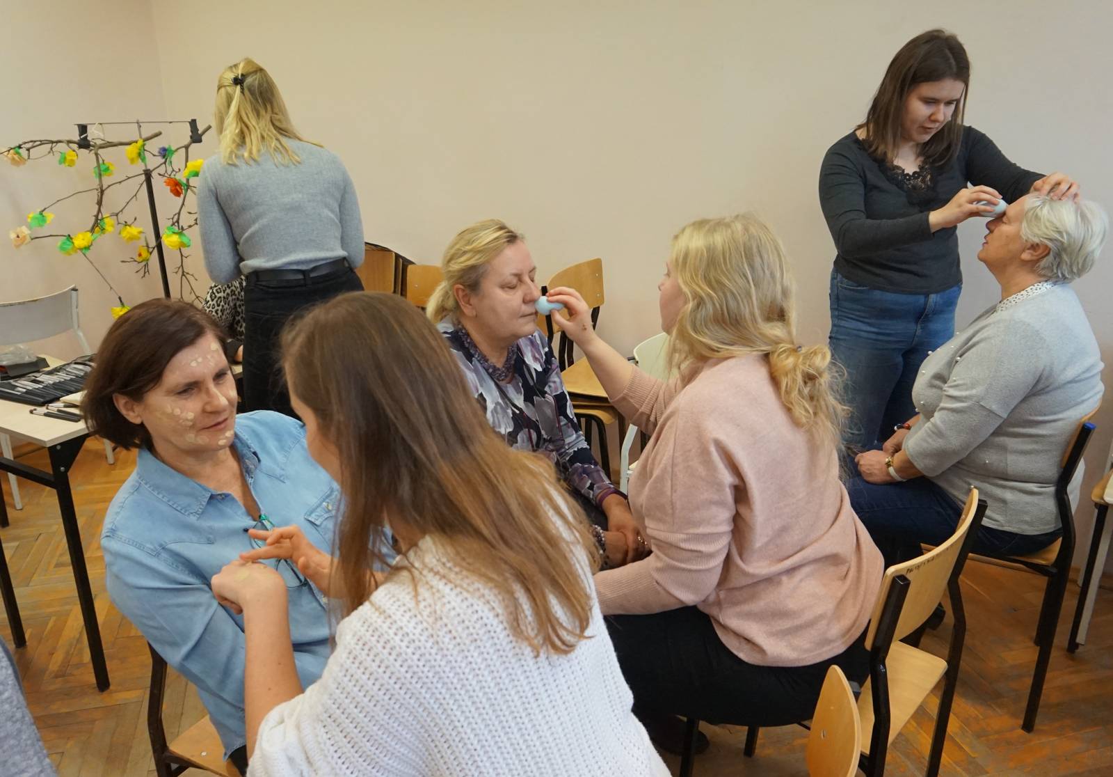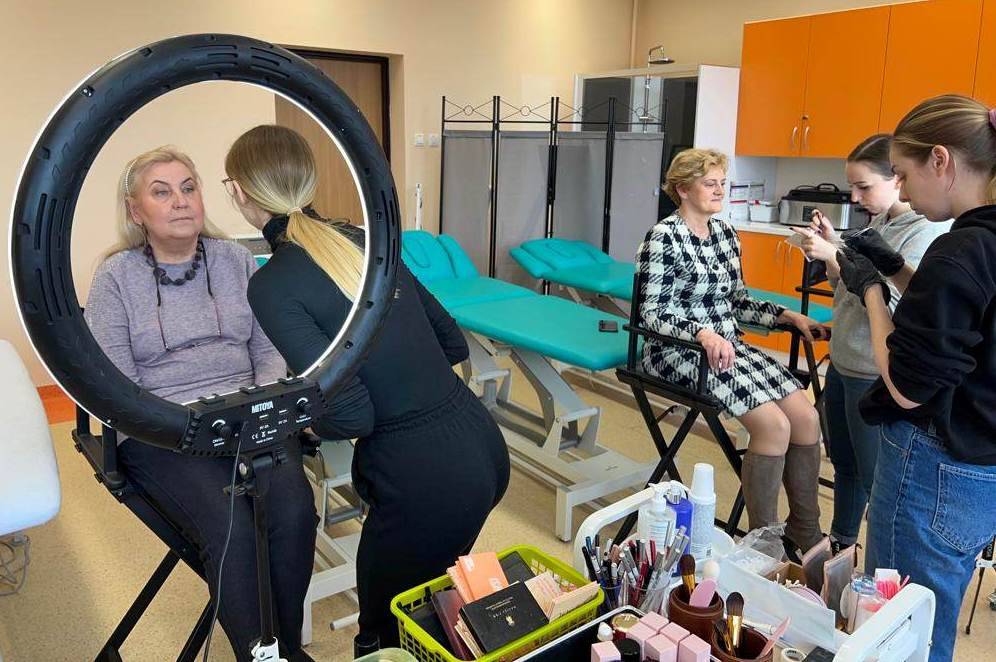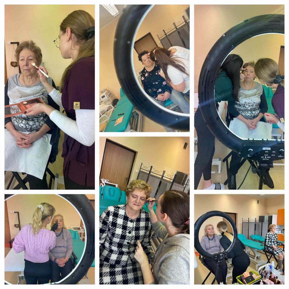 Zajęcia "Wizażu z elementami stylizacji" studentek 3 roku kosmetologii PWSZ z mgr Switłaną Werk - w roli modelek Słuchaczki UTW PWSZ w Koszalinie