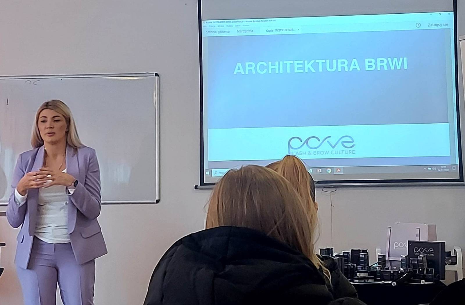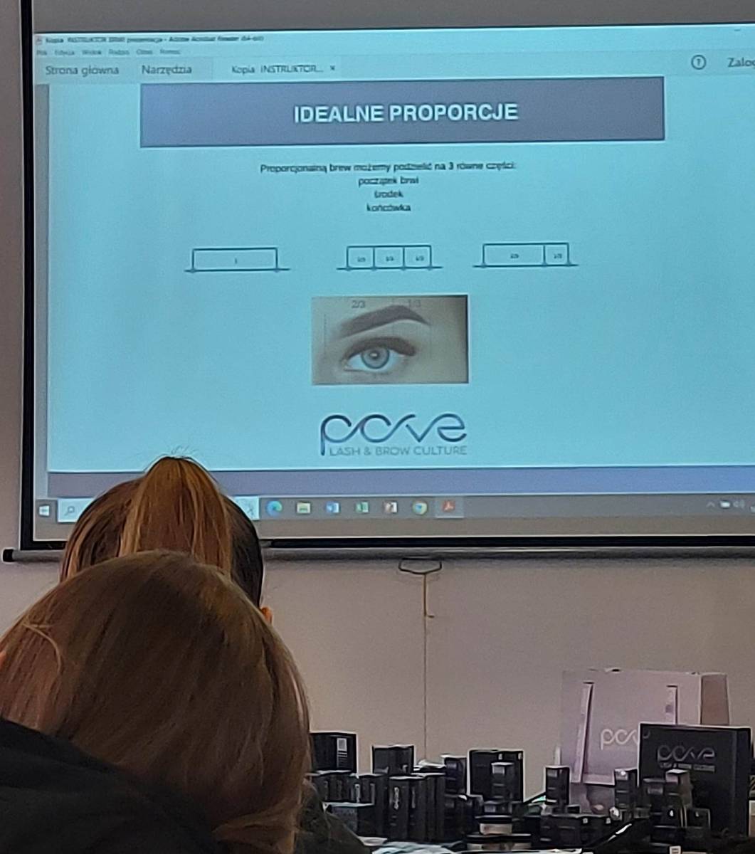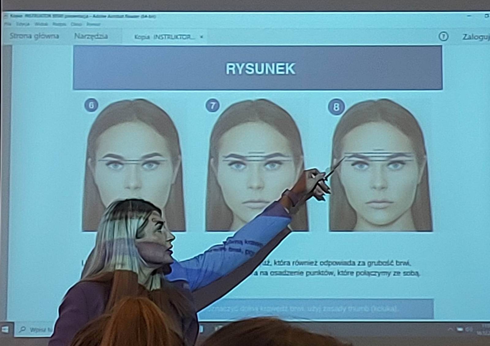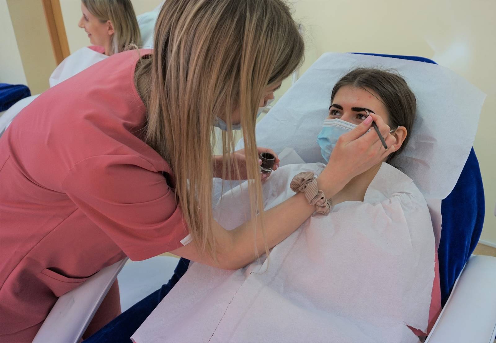 Przyszłe kosmetolożki poznały różne metody stosowane w stylizacji i koloryzacji brwi, techniki makijażu permanentnego, techniki wykonania architektury brwi w oparciu o idealne proporcje twarzy. Zapoznały się z technikami koloryzacji za pomocą farbki, henny i henny pudrowej oraz dowiedziały się o przeciwskazaniach do zabiegu. Podczas części praktycznej studentki poznały w teorii i praktyce procedurę wykonania laminacji brwi. Nabyły także umiejętności pracy na farbce do brwi.