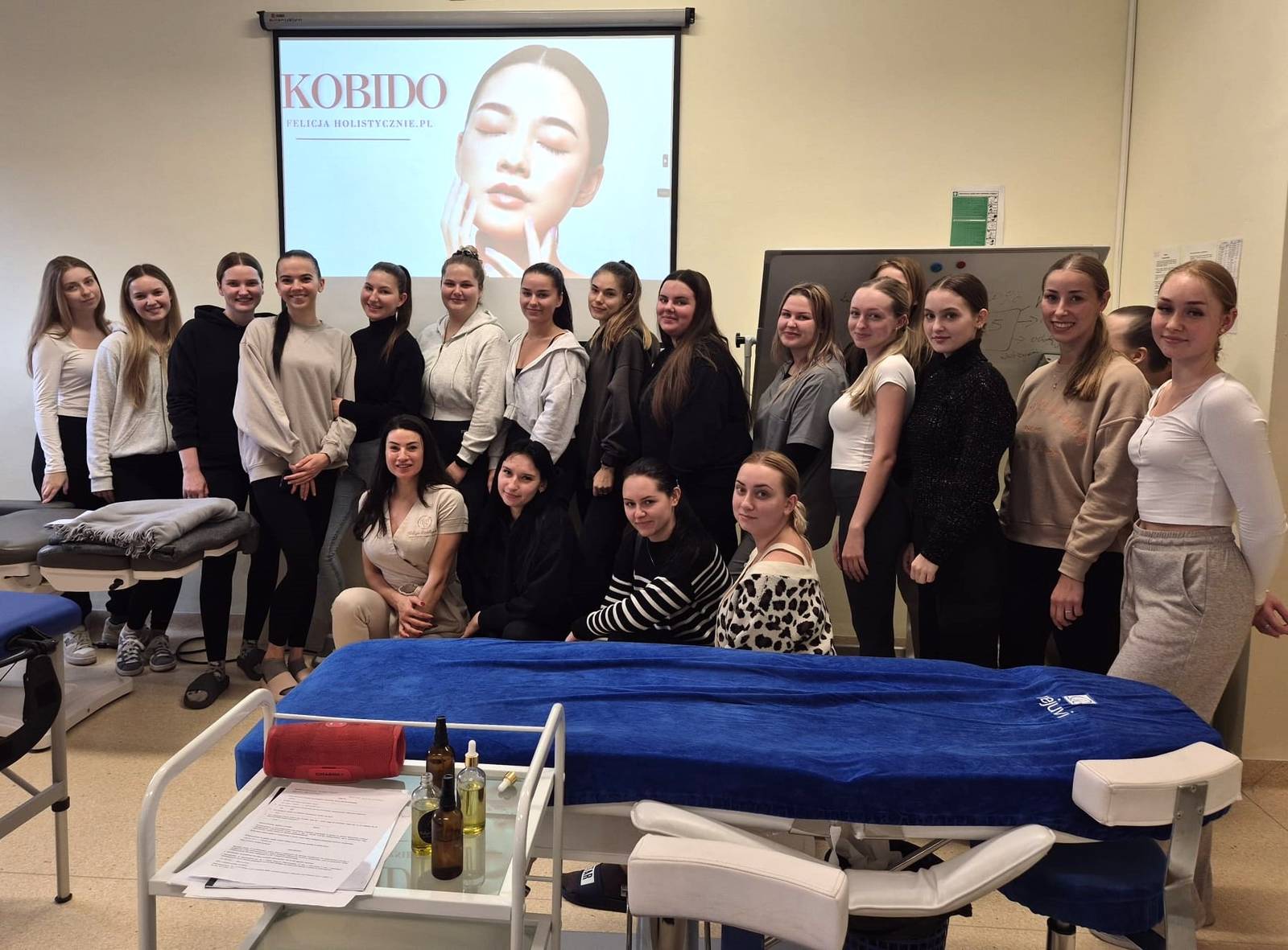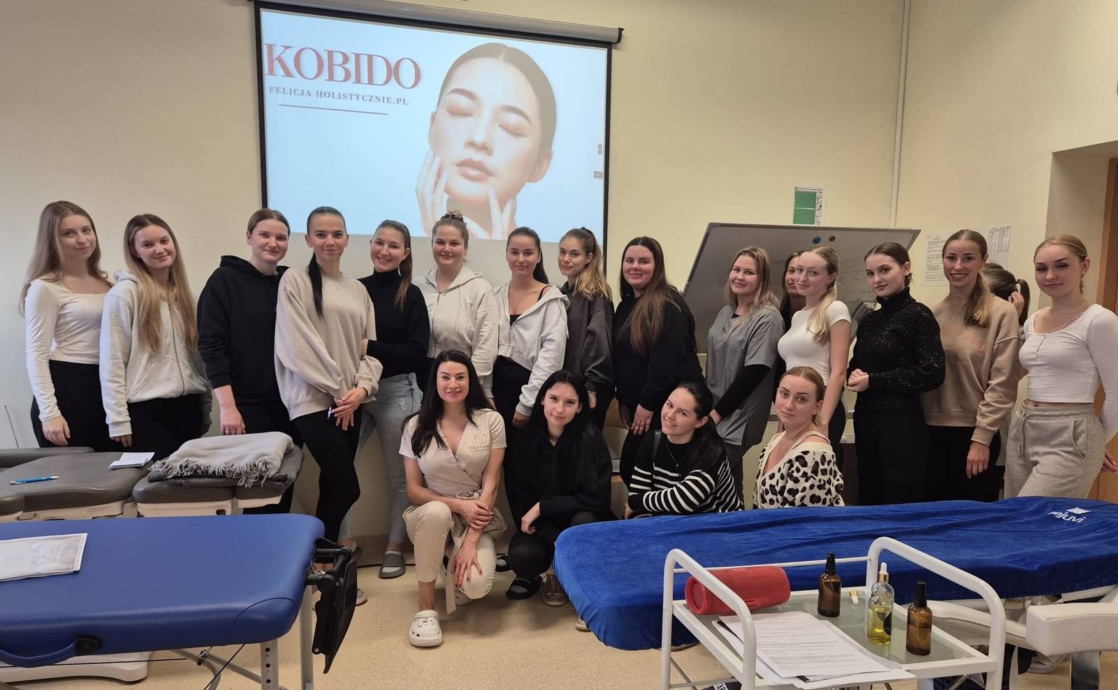Studentki 2 i 3 roku #Kosmetologia PANS w Koszalinie po raz kolejny wzięły udział w szkoleniu zgłębiając techniki masażu Kobido pod kierunkiem Pani Felicja Szałapska w ramach programu Dydaktyczna Inicjatywa Doskonałości 2024. Masaż kobido należy do starożytnych technik masażu twarzy, często nazywany japońskim liftingiem twarzy. Umiejętność wykonywania tego rodzaju zabiegu jest niezwykle cenna i przydatna na rynku usług beauty. Każda ze studentek otrzymała certyfikat ukończenia warsztatów.
