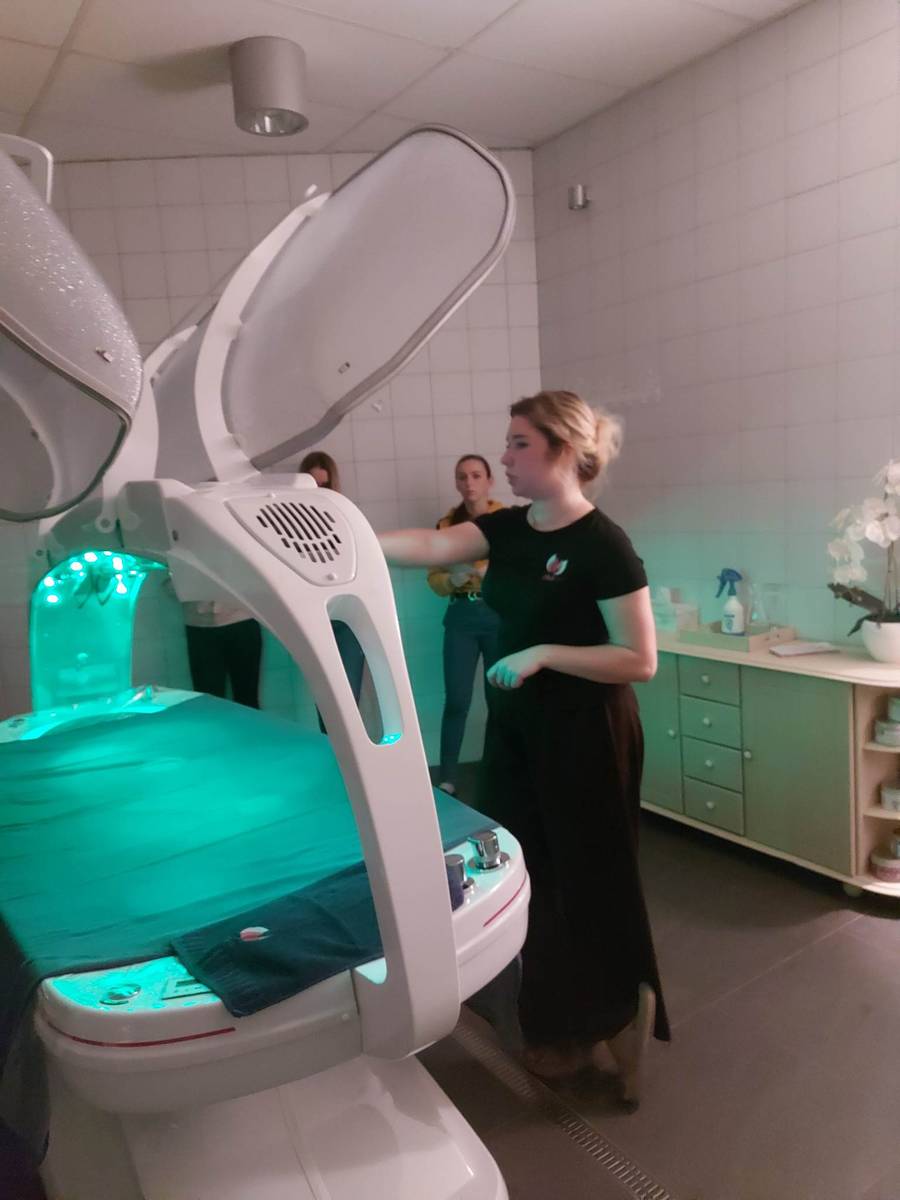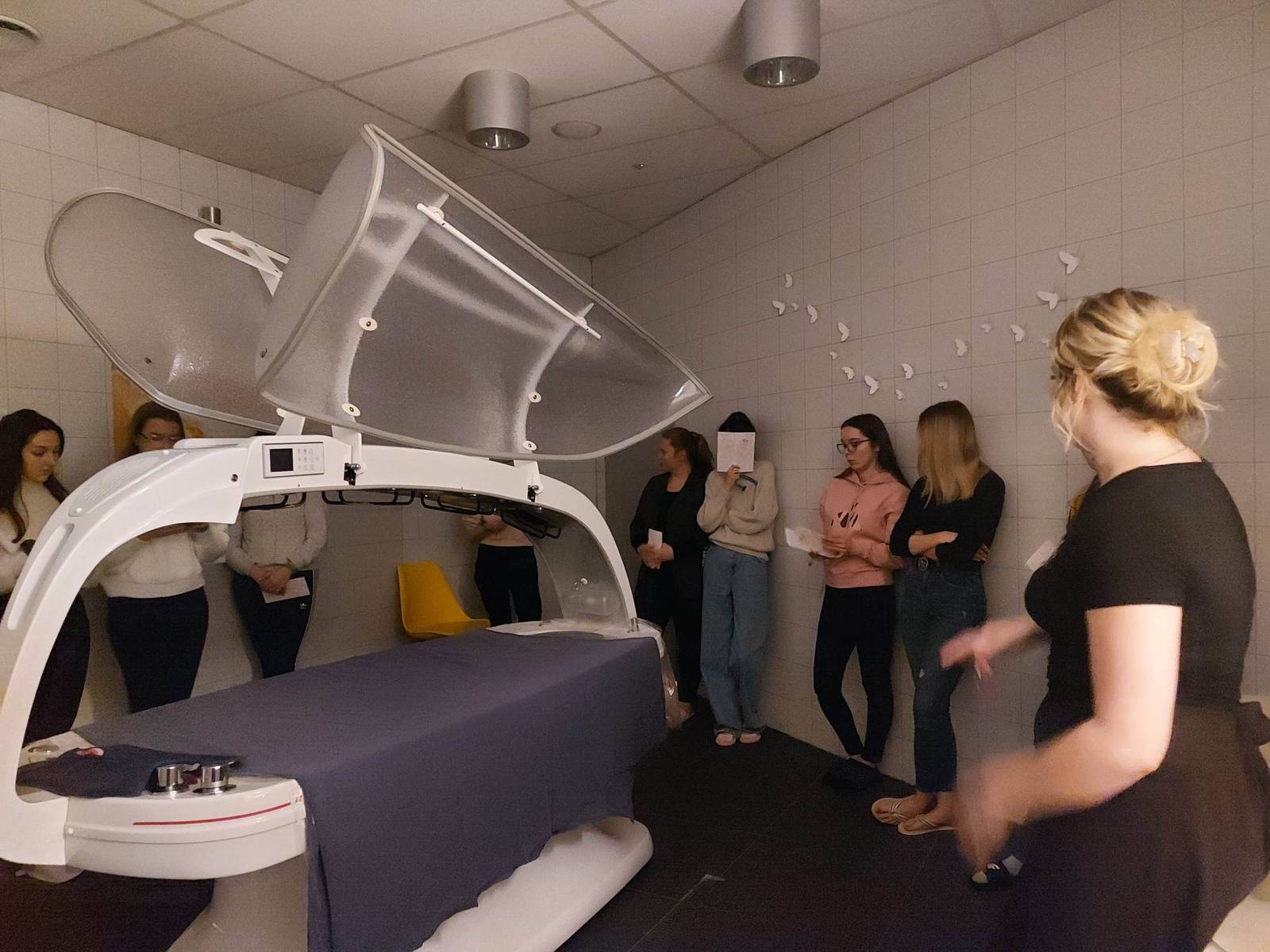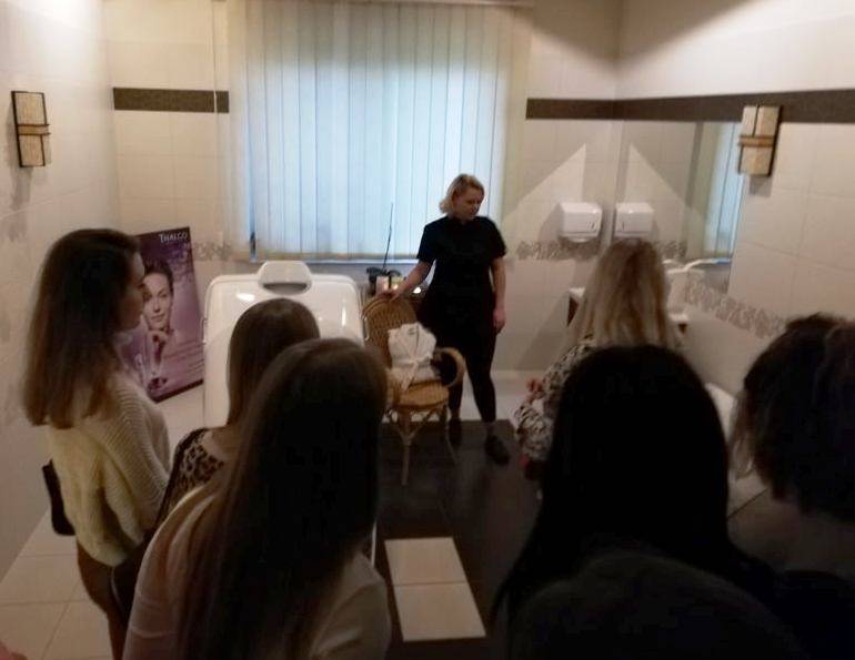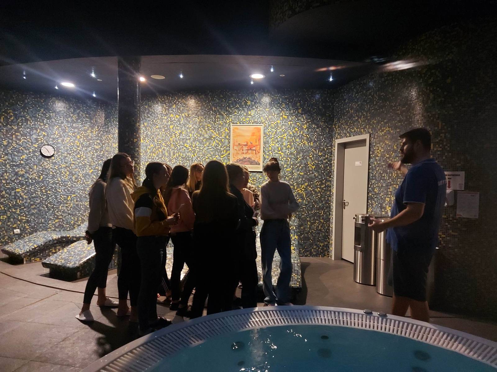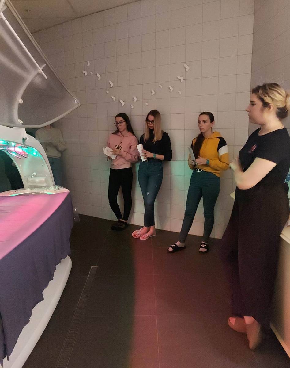 W dniu 29.11.2022r. studentki III roku kosmetologii odwiedziły Małe Spa oraz saunarium mieszczące się w Koszalińskim Parku Wodnym. Studentki zapoznały się z pracą kosmetologa Spa, o której opowiedziała im Pani Kosmetolog Aleksandra Pawłowska (absolwentka PWSZ w Koszalinie na kierunku Kosmetologia). Podczas wizyty studentki zostały zapoznane z zabiegami Spa i masażami rytualnymi. Poznały procedury prawidłowego sanowania oraz funkcjonowanie łaźni parowej, kabiny infrared, sauny fińskiej, sauny ziołowej, groty lodowej. Przyszłe Panie kosmetolog miały zaprezentowany rytuał saunowy z wykorzystaniem olejków aromaterapeutycznych wykonany przez wyszkolonego sunamajstera p. Pawła. Wizyta ta odbyła się dzięki środkom pozyskanym z programu Ministerstwa Edukacji i Nauki pn. "Dydaktyczna Inicjatywa Doskonałości".