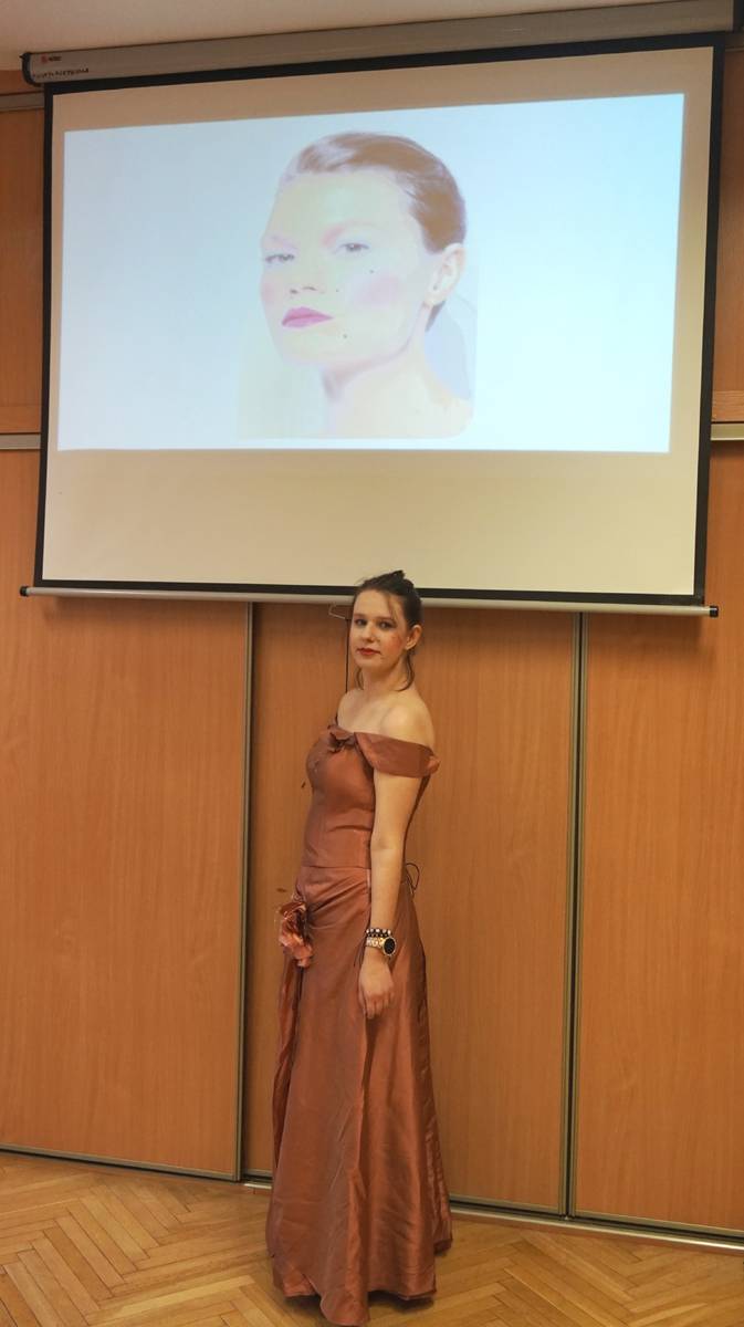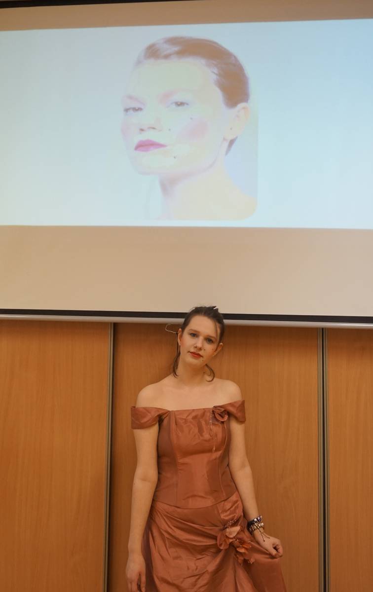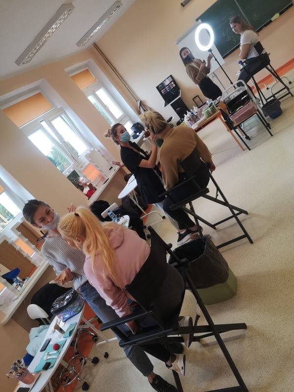 Studentki zaczęły od makijażu dziennego, kolejno wykonywały makijaże wieczorowe typu smoky, glow, makijaż glamour- z kreską i czerwonymi ustami, w kolejnym semestrze skupiły się na makijażu ślubnym - różnych jego wersjach. Cały czas doskonalą technikę modelowania twarzy, modelowania oka poprzez nakładanie cieni, blendowanie ich oraz doklejanie sztucznych rzęs.