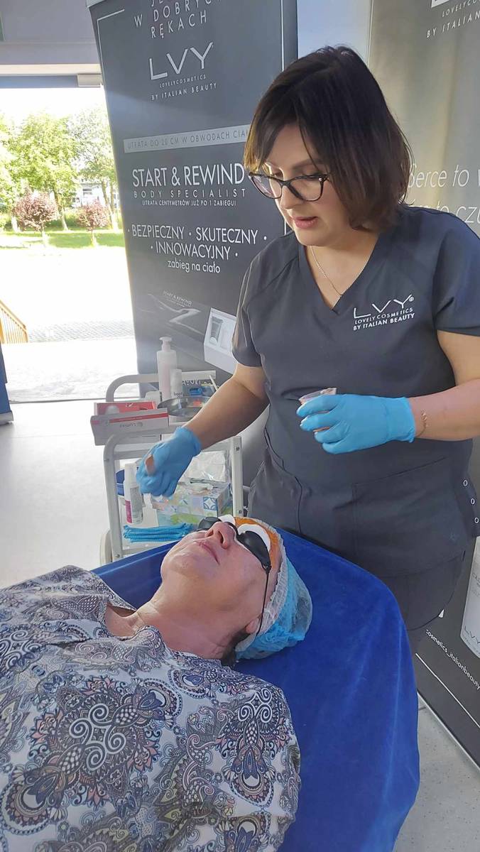Elementem sympozjum był również pokaz profesjonalnych zabiegów przeprowadzonych przez mgr Monikę Michałowską, która podzieliła się swoim doświadczeniem i przekazała cenną wiedzę praktyczną. Zaprezentowała specjalistyczny zabieg odbudowujący barierę hydrolipidową HYRA WEAR oraz zabieg z wykorzystaniem niebieskiej diody LED FLUORESCENT LIGHT ENERGY. Była to doskonała okazja do obserwowania praktycznego podejścia do innowacyjnych zabiegów oraz poznania nowych technik pracy.