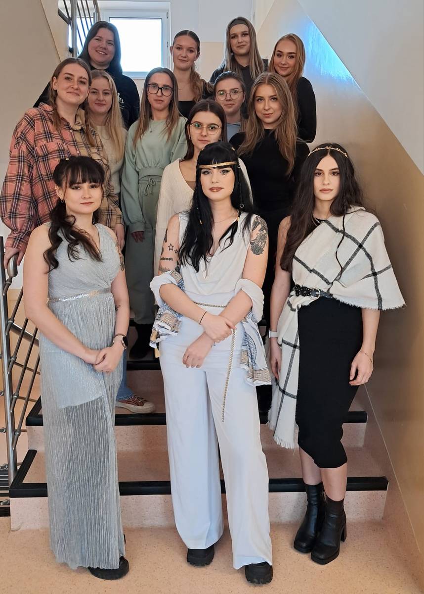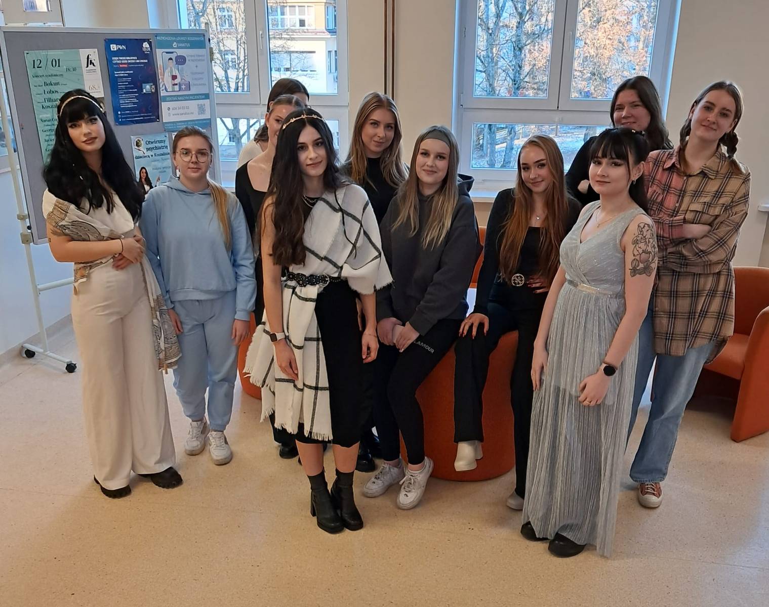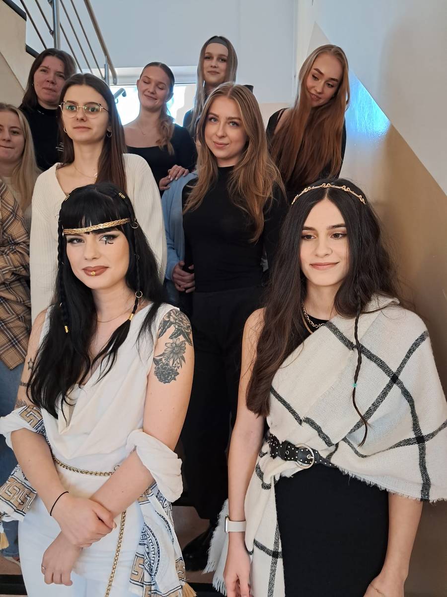 Studentki 1 roku #kosmetologia PWSZ w Koszalinie na zajęciach z przedmiotu „Historia kosmetologii” z mgr Dominiką Szyszką odwzorowały postaci ze starożytnego Egiptu, Grecji i Rzymu.