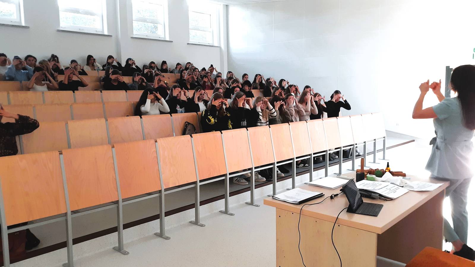 Głównym punktem spotkania był wykład, pokaz i informacje dotyczące właściwej pielęgnacji młodej skóry twarzy. Podczas zajęć uczestnicy mieli możliwość komputerowego badania skóry i analizy kondycji swojej cery. Nie zabrakło również fachowych porad i wskazówek doświadczonej wykładowczyni kierunku #kosmetologia mgr Magdalena Mielniczuk-Goncalves.