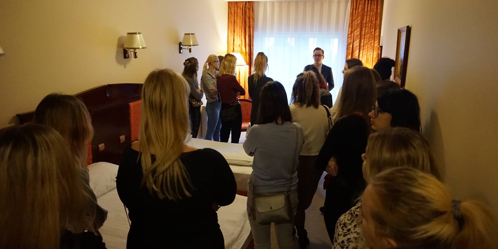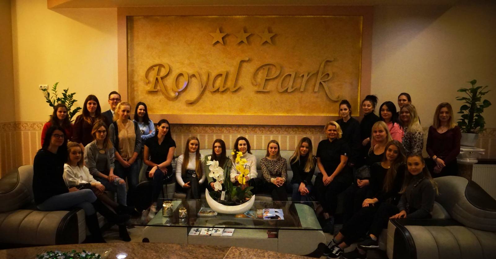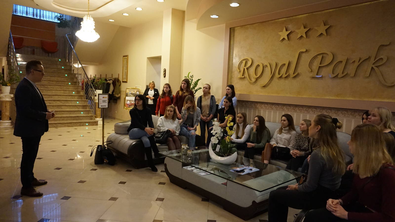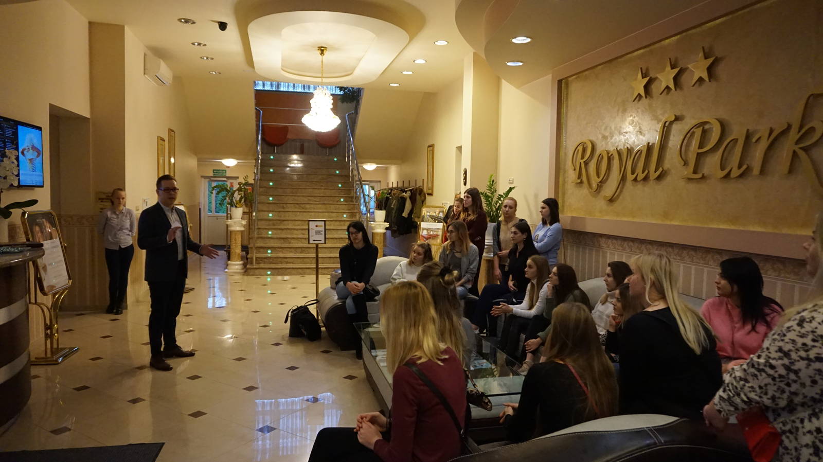 21.11.2019r. studentki 1 roku kosmetologii odwiedziły Royal Park Hotel & SPA w Mielnie. Celem wizyty było zapoznanie przyszłych kosmetolożek ze środowiskiem pracy oraz sposobem funkcjonowania ośrodków SPA & Wellness w obiektach hotelarskich. Spotkanie miało swój początek w sercu hotelu, gdzie po oficjalnym powitaniu nastąpiła prezentacja kolejnych elementów infrastruktury noclegowej, gastronomicznej i konferencyjnej. Kluczowym punktem wizyty było szczegółowe zapoznanie się z bazą Instytutu SPA & Wellness, kompleksową ofertą zabiegów oraz wybranymi zagadnieniami związanymi z obsługą Gościa. Miłą niespodzianką wizyty była możliwość skorzystania każdej studentki z zabiegów pokazowych, które miały przybliżyć tajniki przyszłego zawodu.